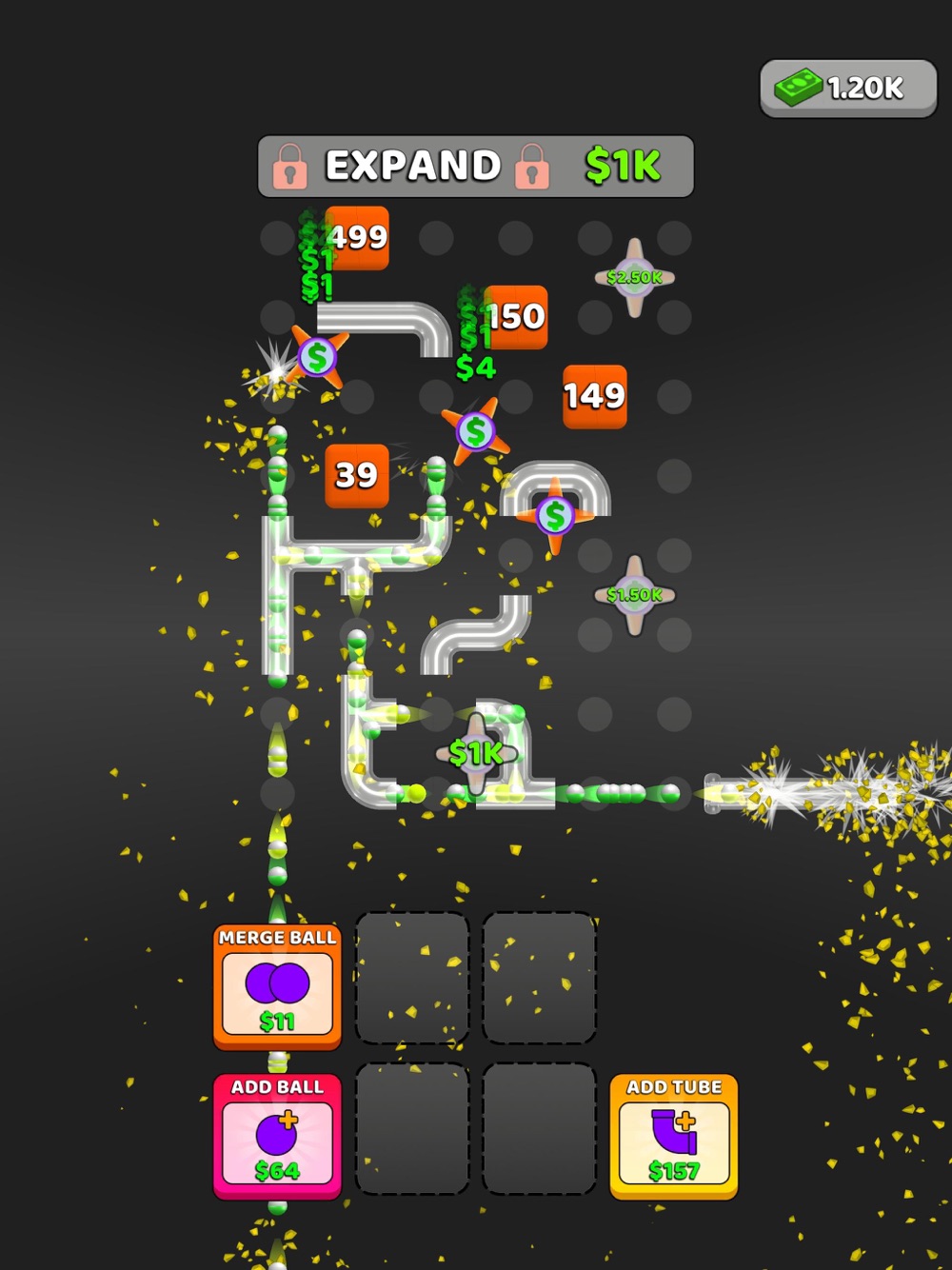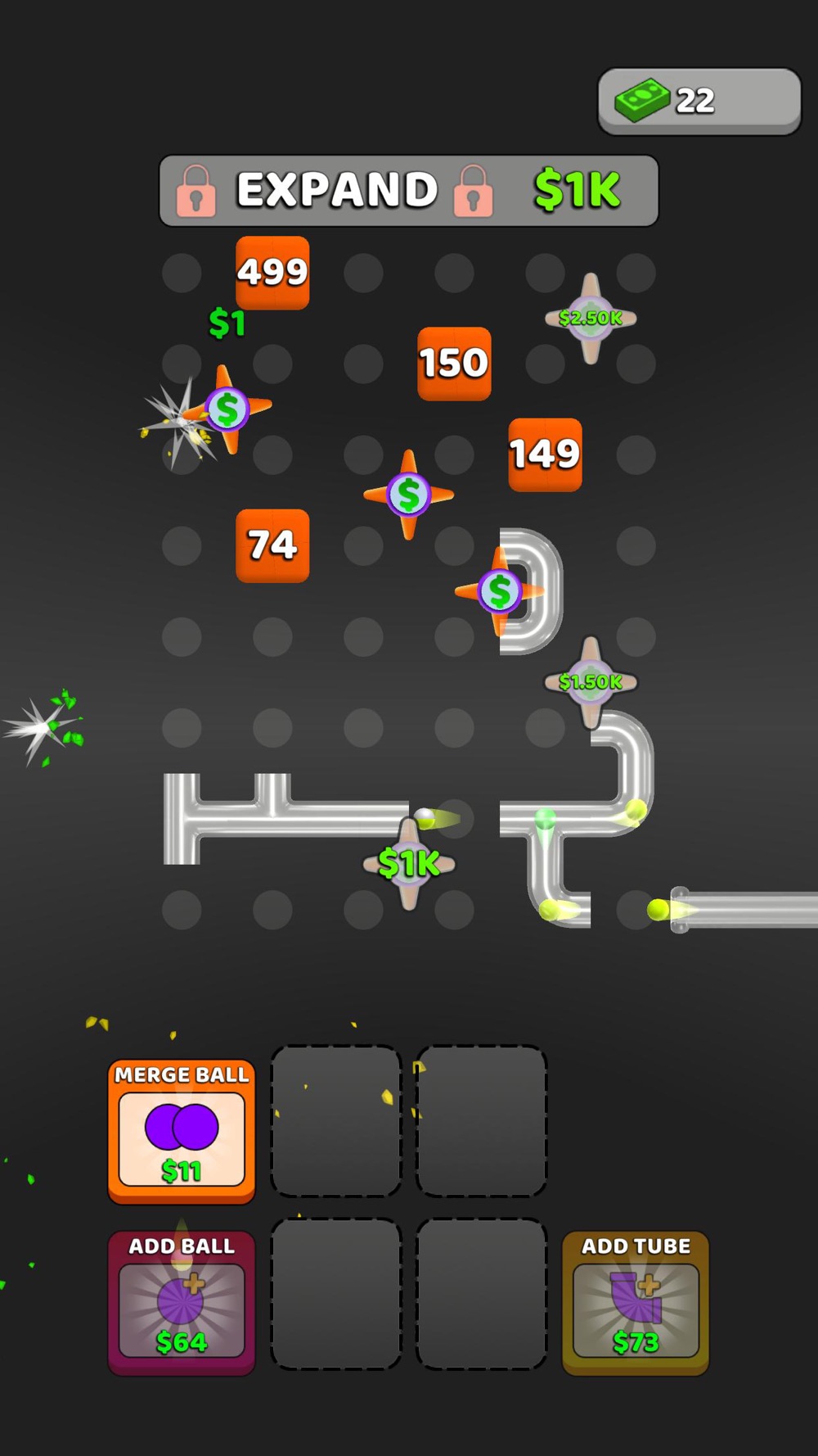 Hit pins to generate income and merge your tubes to upgrade your system!