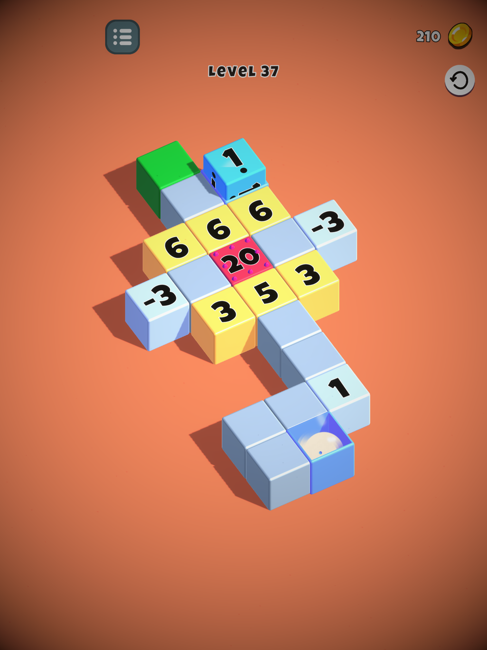 As you roll your cube, you'll encounter other cubes with numbers on them that you can add, subtract, or multiply to match the number on the final cube.