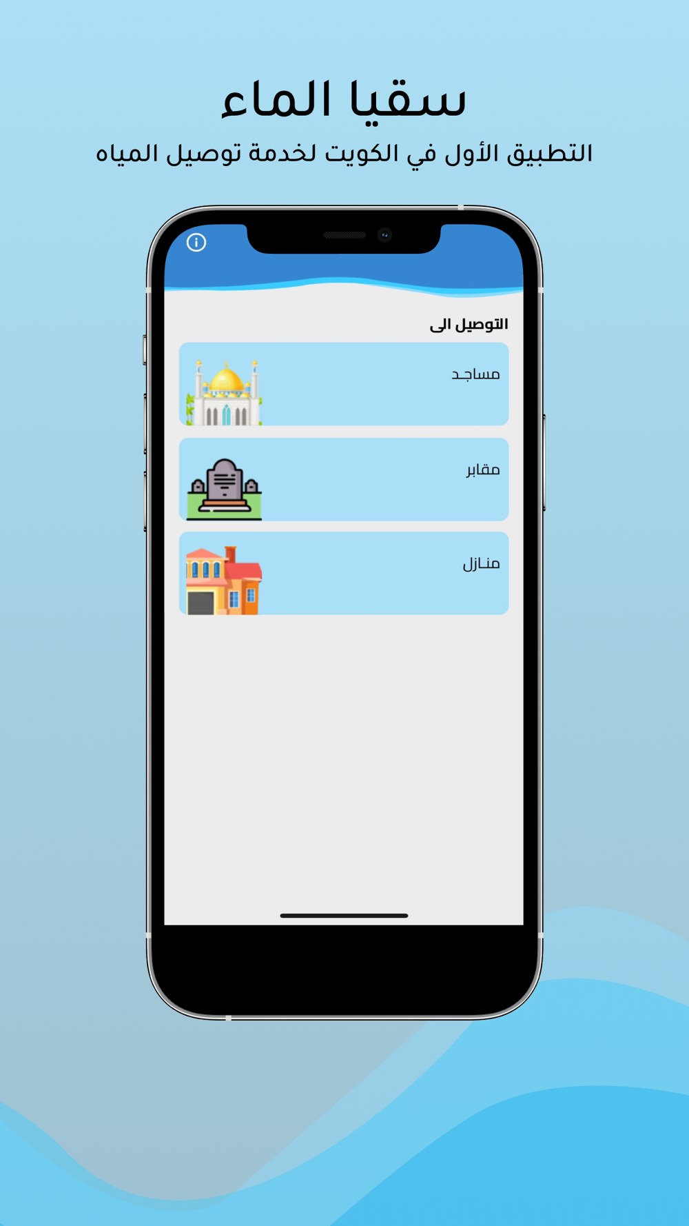 التطبيق الأول في الكويت لخدمة توصيل المياه الي جميع مناطق الكويت سواء كان مسجد أو عنوان آخر.