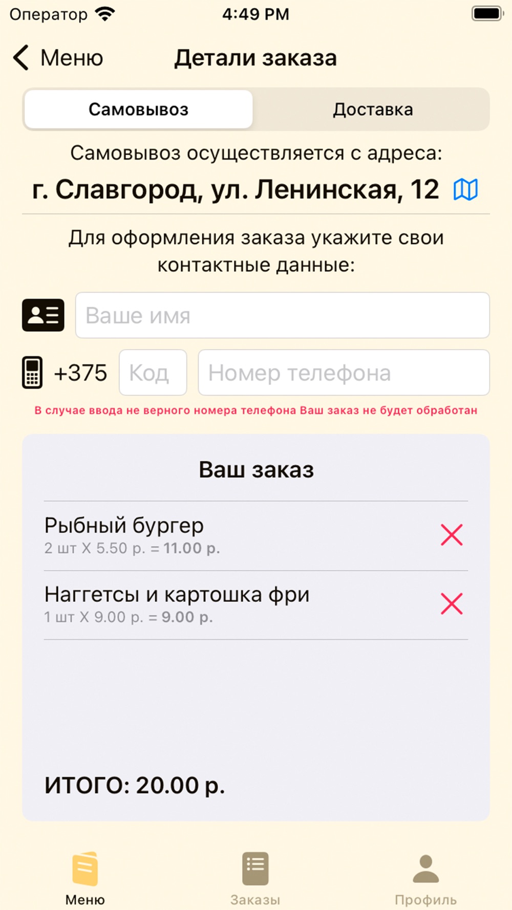 Burger.fre - удобное приложение для заказа еды в г. Славгород, Могилевской области, РБ.