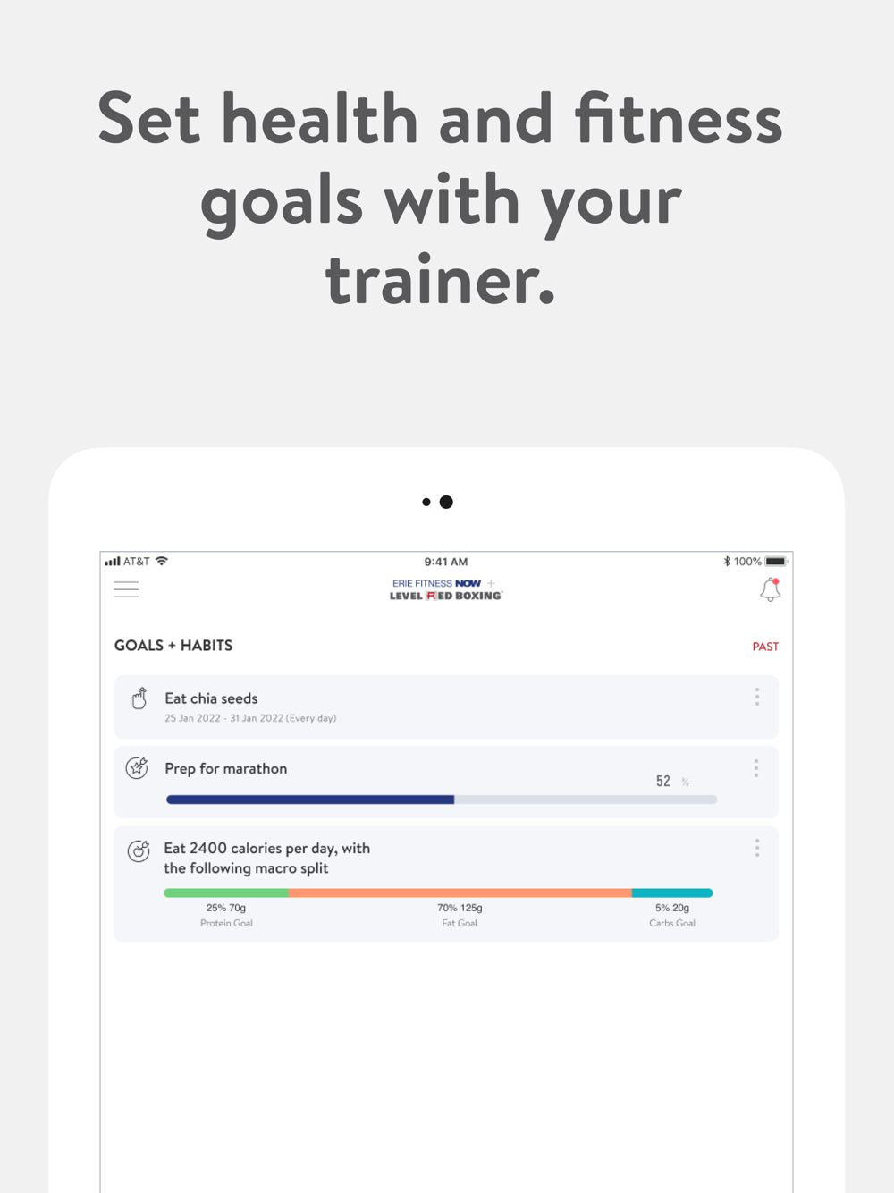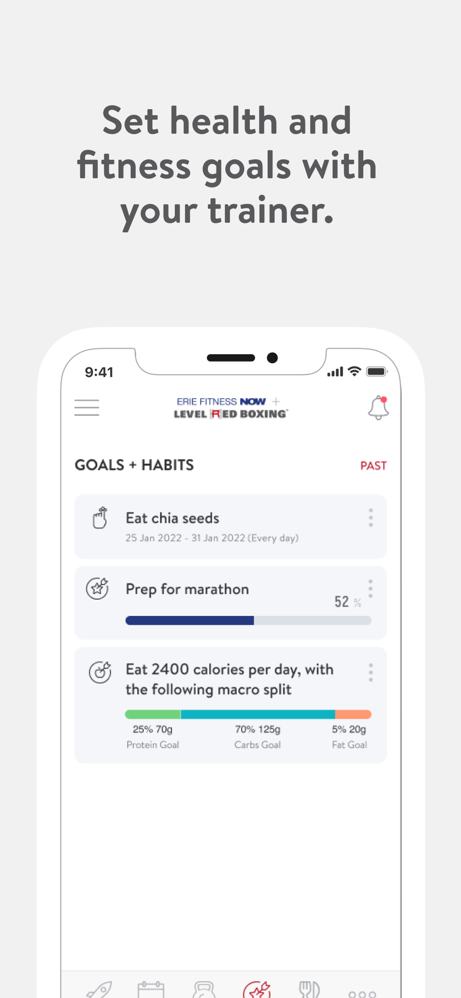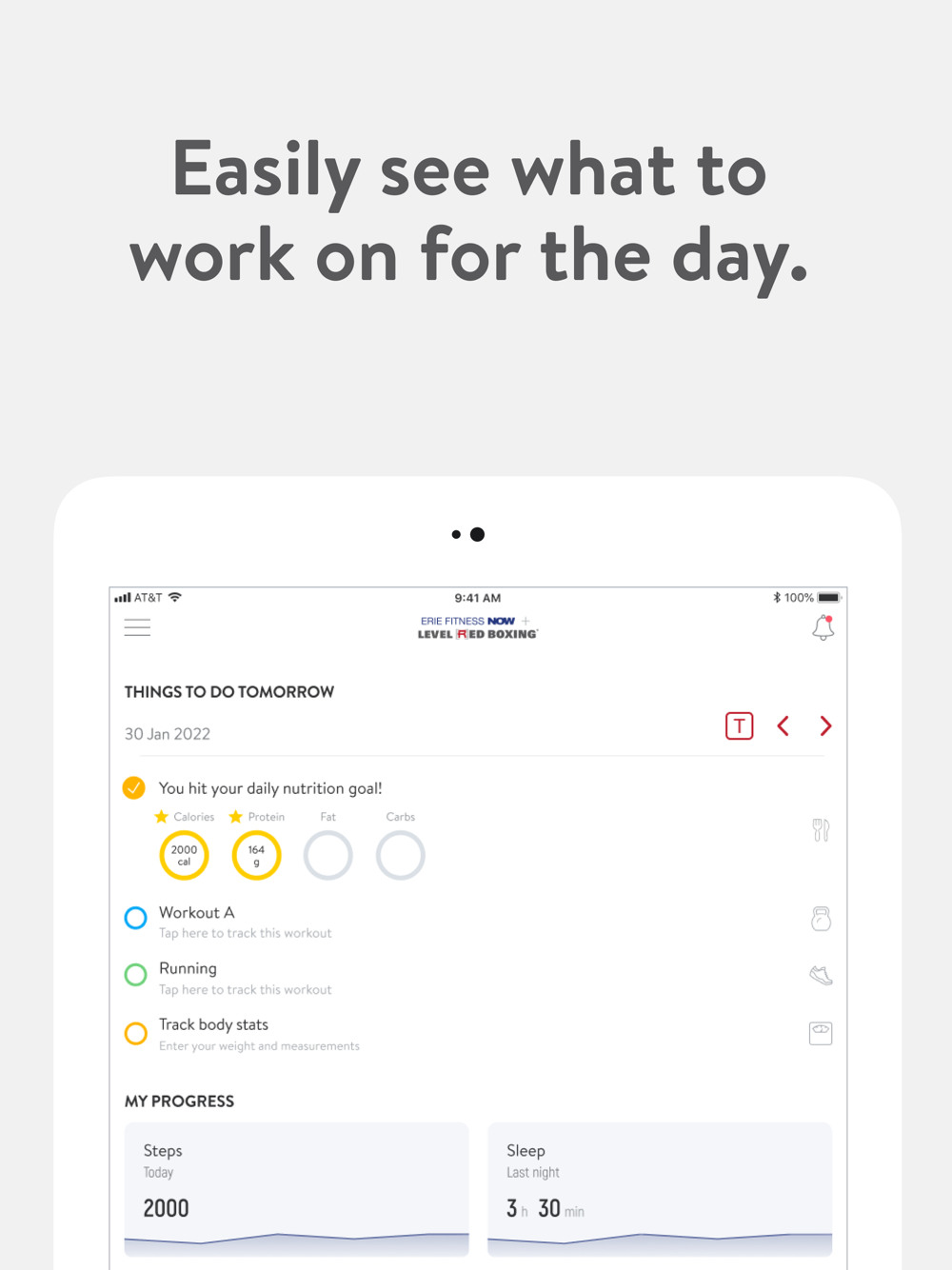 With the Erie Fitness Now and Level Red App, you can start tracking your workouts and meals, measuring results, and achieving your fitness goals.