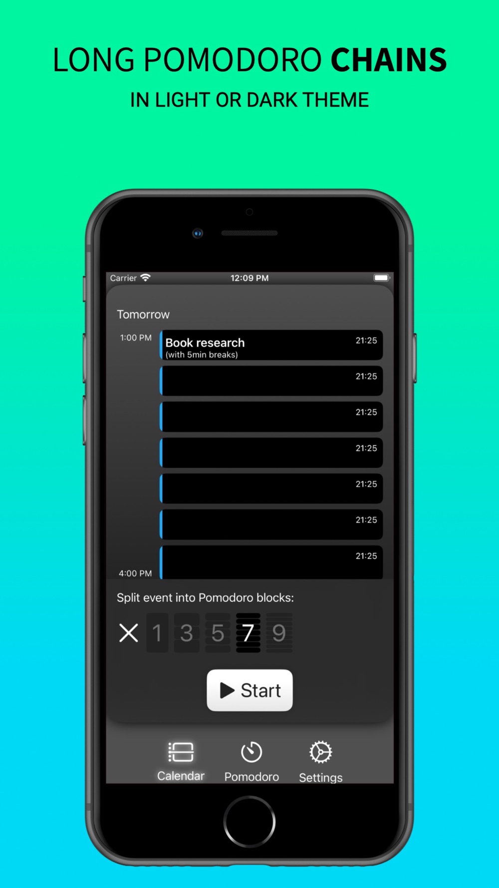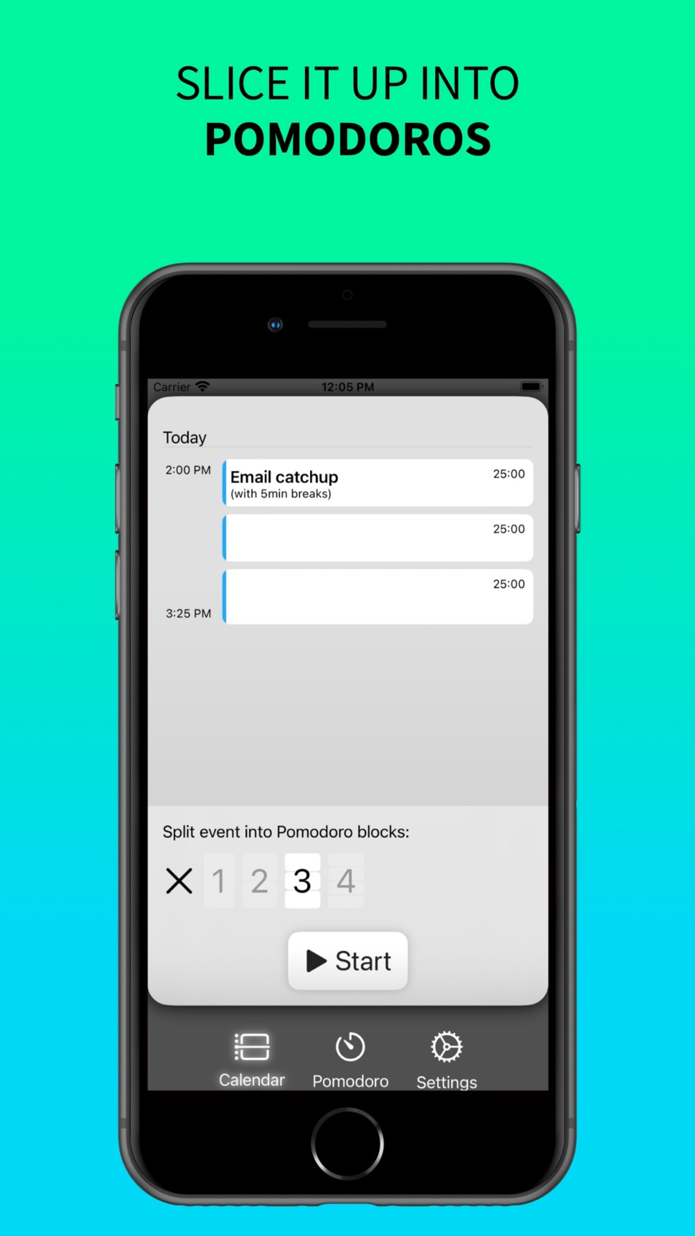‣ Choose how many timers to create, Calendoro automatically slices your event into the correct number of focus timers, with breaks between.