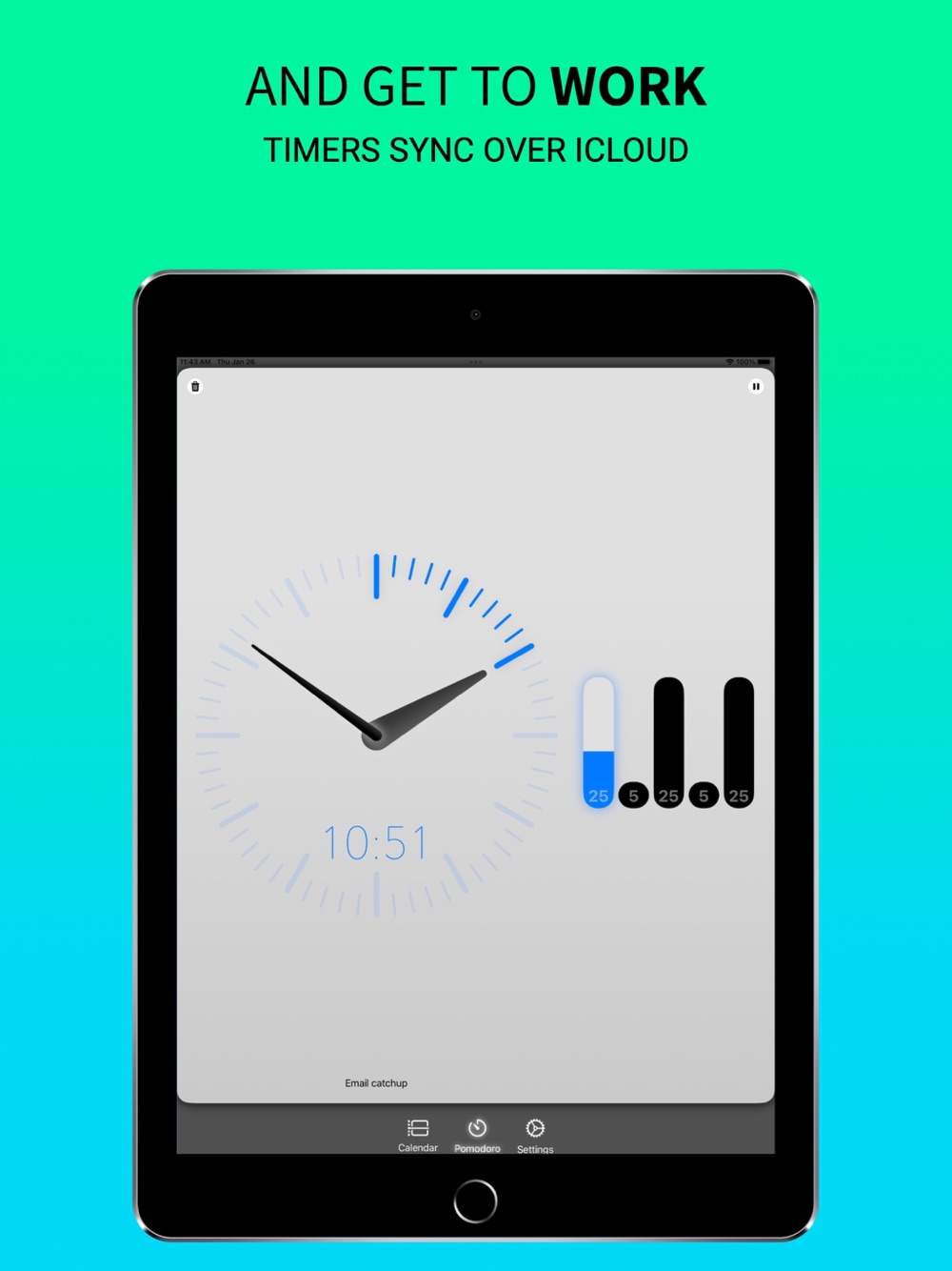 ‣ It syncs! Your pomodoro timer will stay in perfect sync on your iPhone, iPad, Watch and Mac.