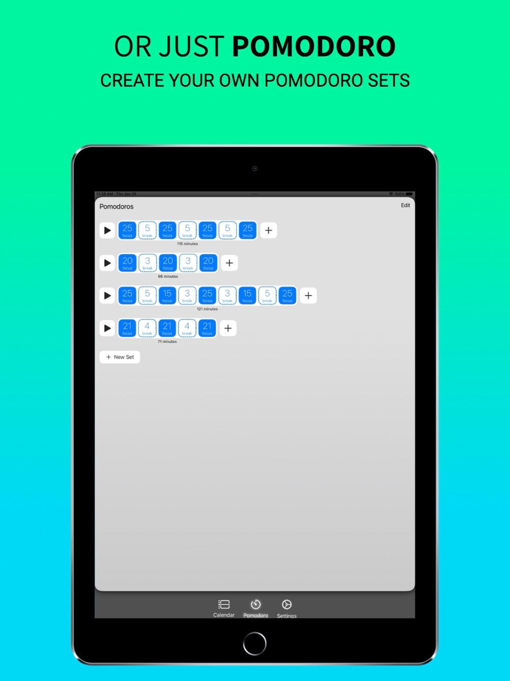 ‣ Optionally, skip the calendar and launch pomodoro sets from templates.