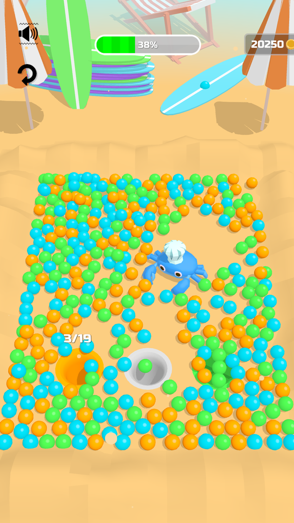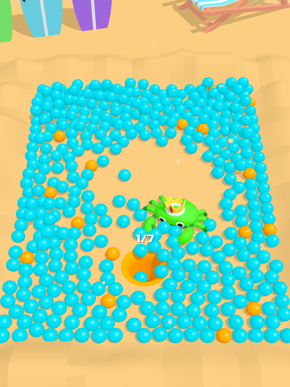 Use the crab claws to redirect the balls you have choosen, place them in the right hole to finish or even to open new ones.