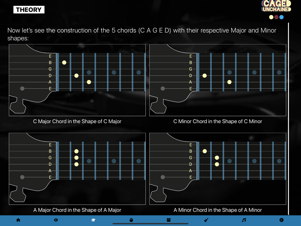 You won’t be finding a list of chords or a specific song or melody on this app, but rather a theoretical and practical reference method that will let you be free to orient yourself to be able to play and improvise in any scale or tone you choose.