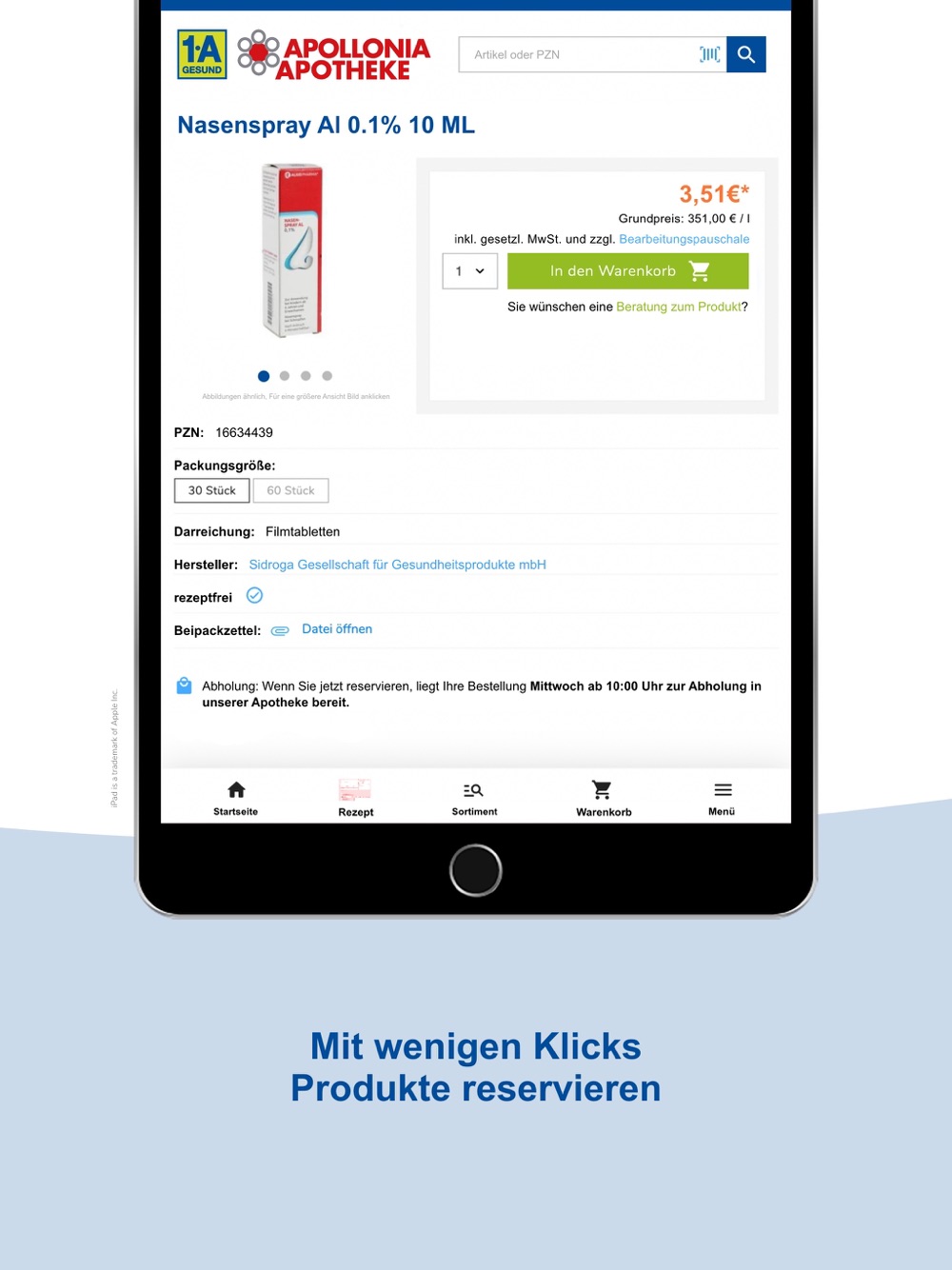 Wir bieten Ihnen über die App unser gesamtes Sortiment. Nicht sofort verfügbare Produkte bestellen wir für Sie und machen Sie in der Regel bis zum nächsten Werktag abholbereit. Gerne liefern wir Ihnen Ihre Bestellung per Botendienst direkt nach Hause.