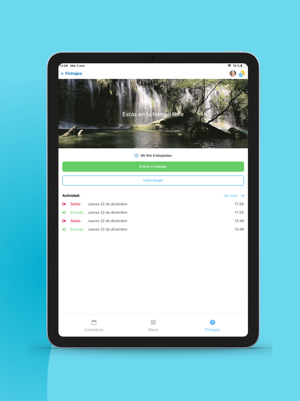 - Control de fichajes con geolocalización y control horario.