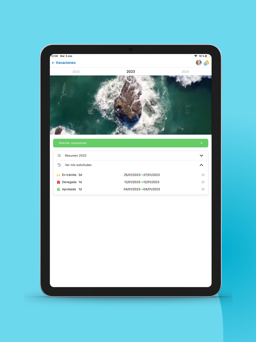 - Gestión de vacaciones y permisos.