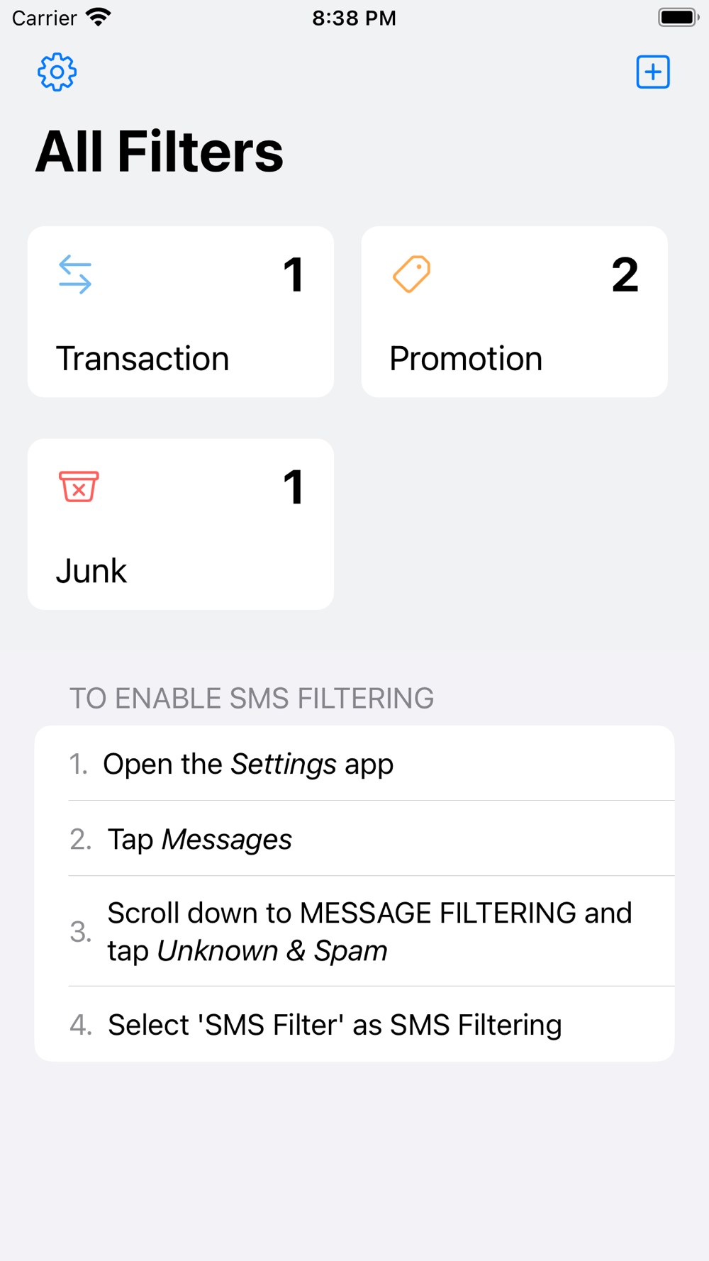 SMS Filter - Smart Filter is a SMS filtering tool that provides a way for you to filter incoming SMS based on message body or phone number.