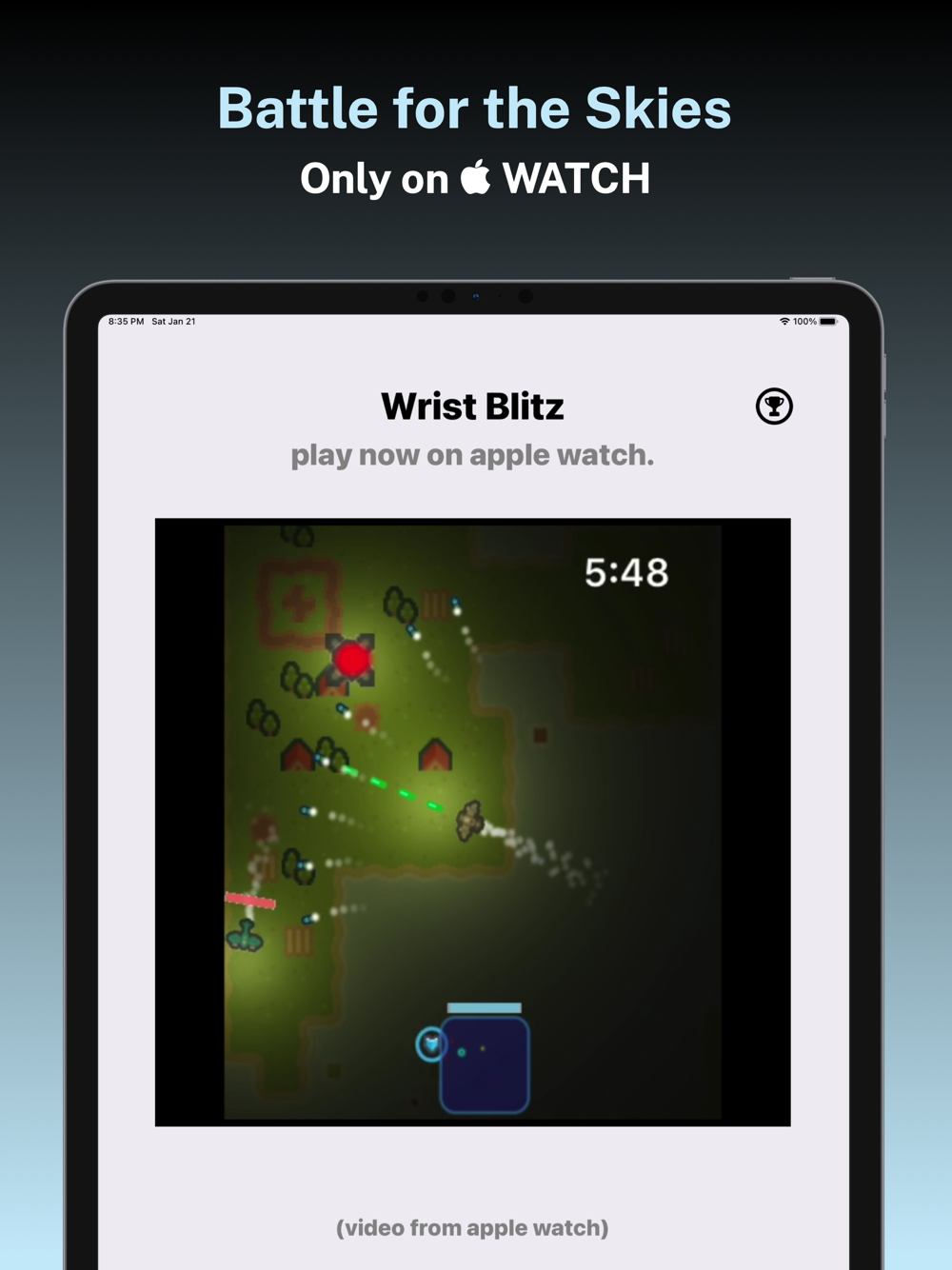 Introducing "Wrist Blitz: Battle for the Skies," the ultimate Apple Watch gaming experience. Step into the shoes of a rookie pilot and take to the skies for intense aerial battles. With a unique story that puts you in the middle of the action, you'll unlock powerful and chaotic weapons as you progress through the game. Utilize stealth on key missions and outsmart your enemies to emerge victorious.