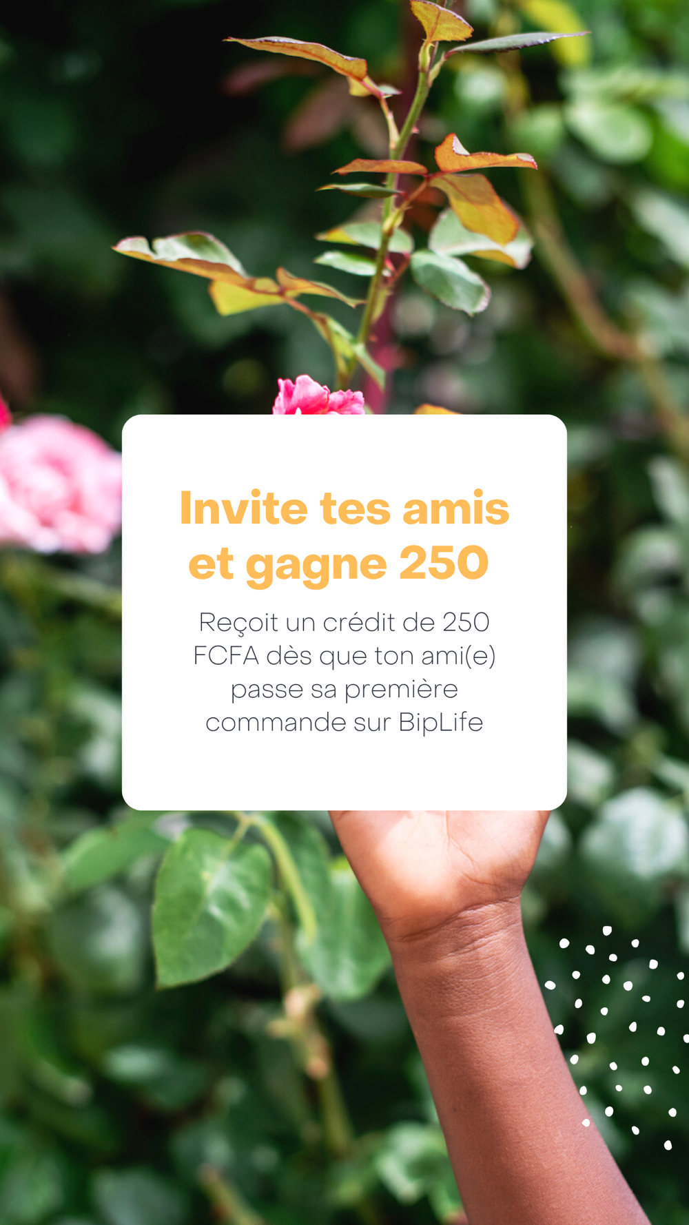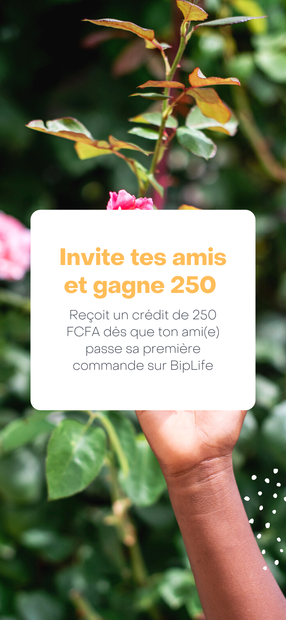 Ne garder pas le bonheur d’utiliser Bip Life pour vous seul. Partagez avec vos amis(es) et votre famille et gagnez des bonus chaque fois qu’une personne que vous avez parrainée s’enregistre sur Bip Life et passe une commande