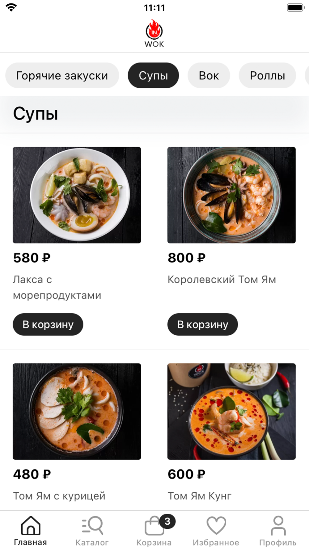 ⁃ Быстрый заказ любимых блюд