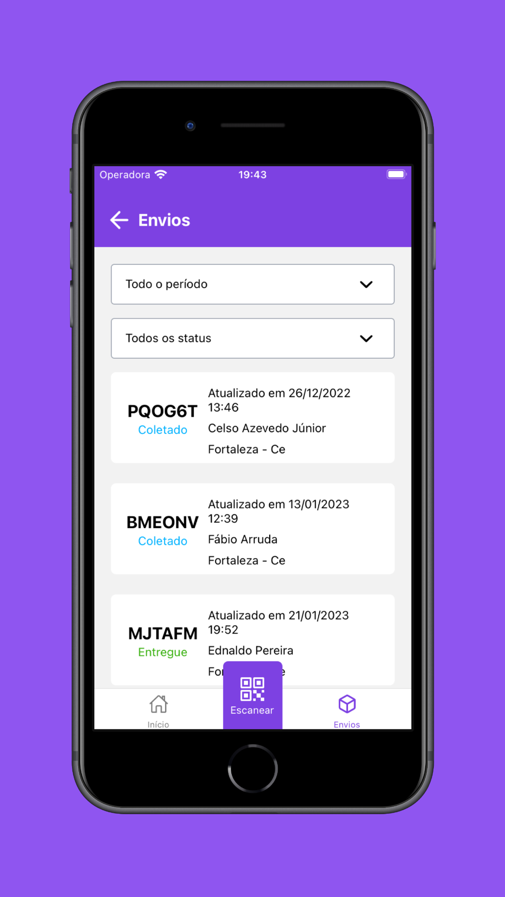 Gerencie seus envios de maneira rápida e fácil através do app.