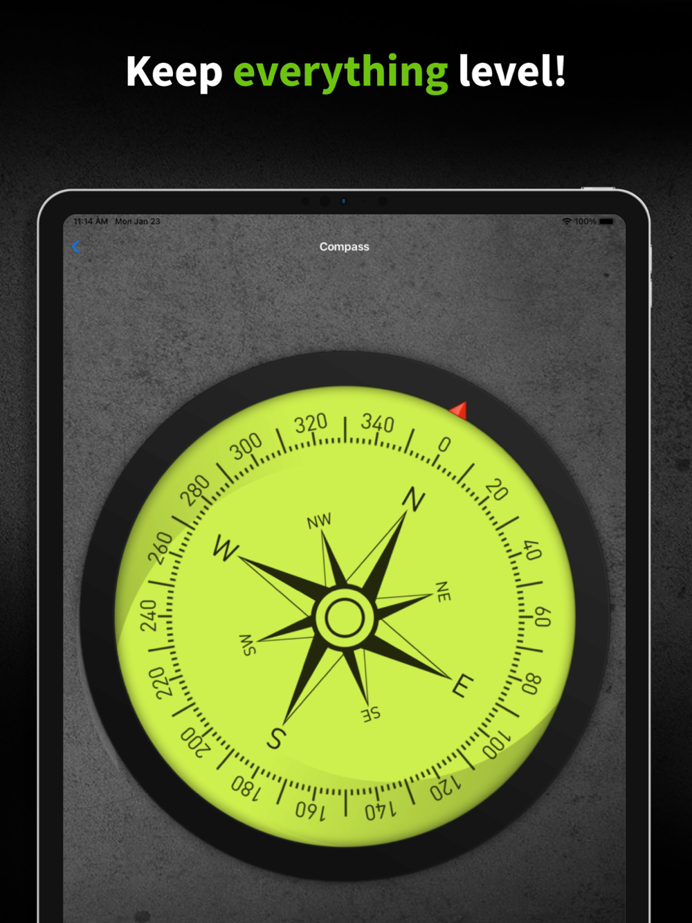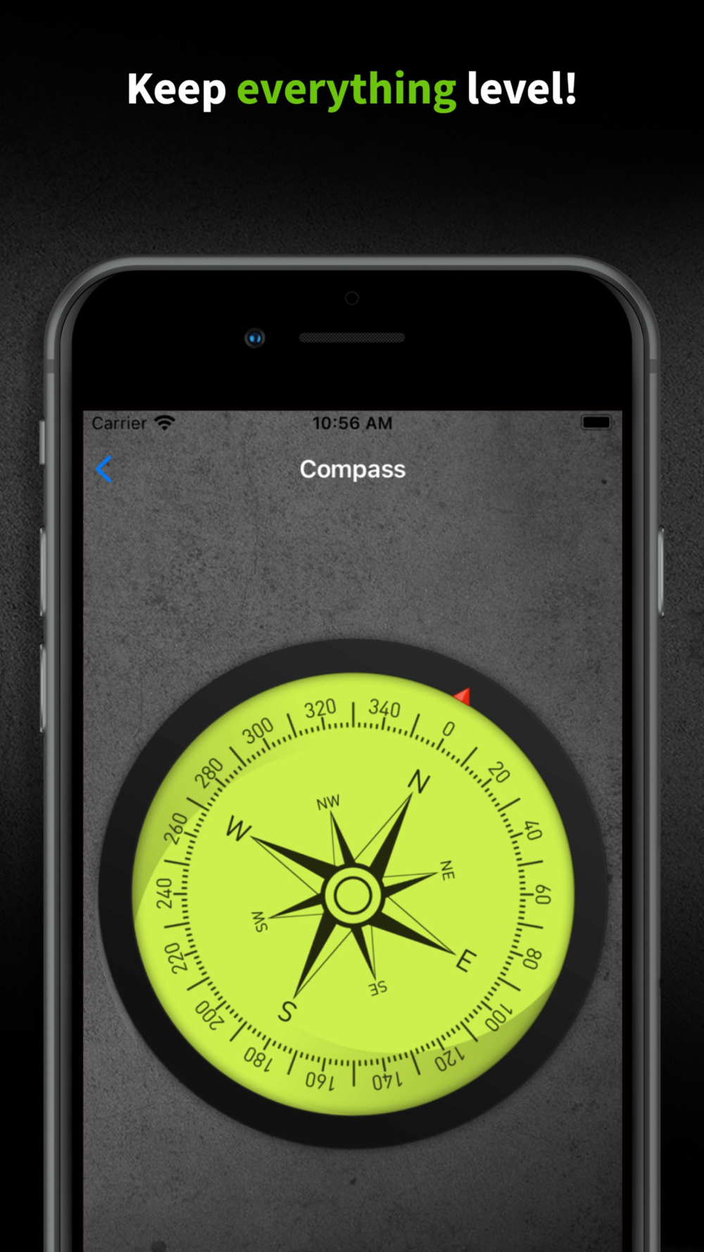 Choose from different leveling options, the 3 in 1 bubble level, the clinometer (Inclinometer) which allows you to measure the angles of sloped lines, or simply lay your phone on a surface or on its side like a traditional level. This app also has a compass with a bubble level inside which allows you to easily check your heading and level simultaneously.