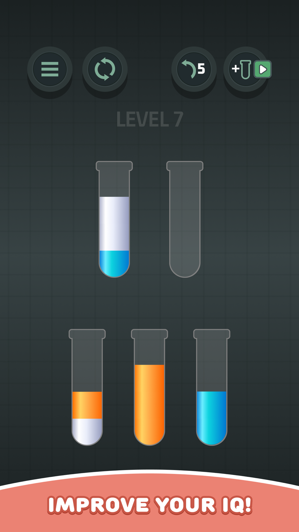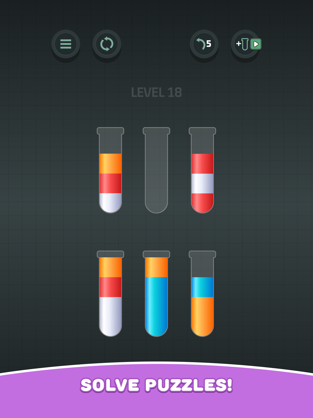 - Tap a tube with the liquid you want to move and then tap the next tube to pour that liquid there.