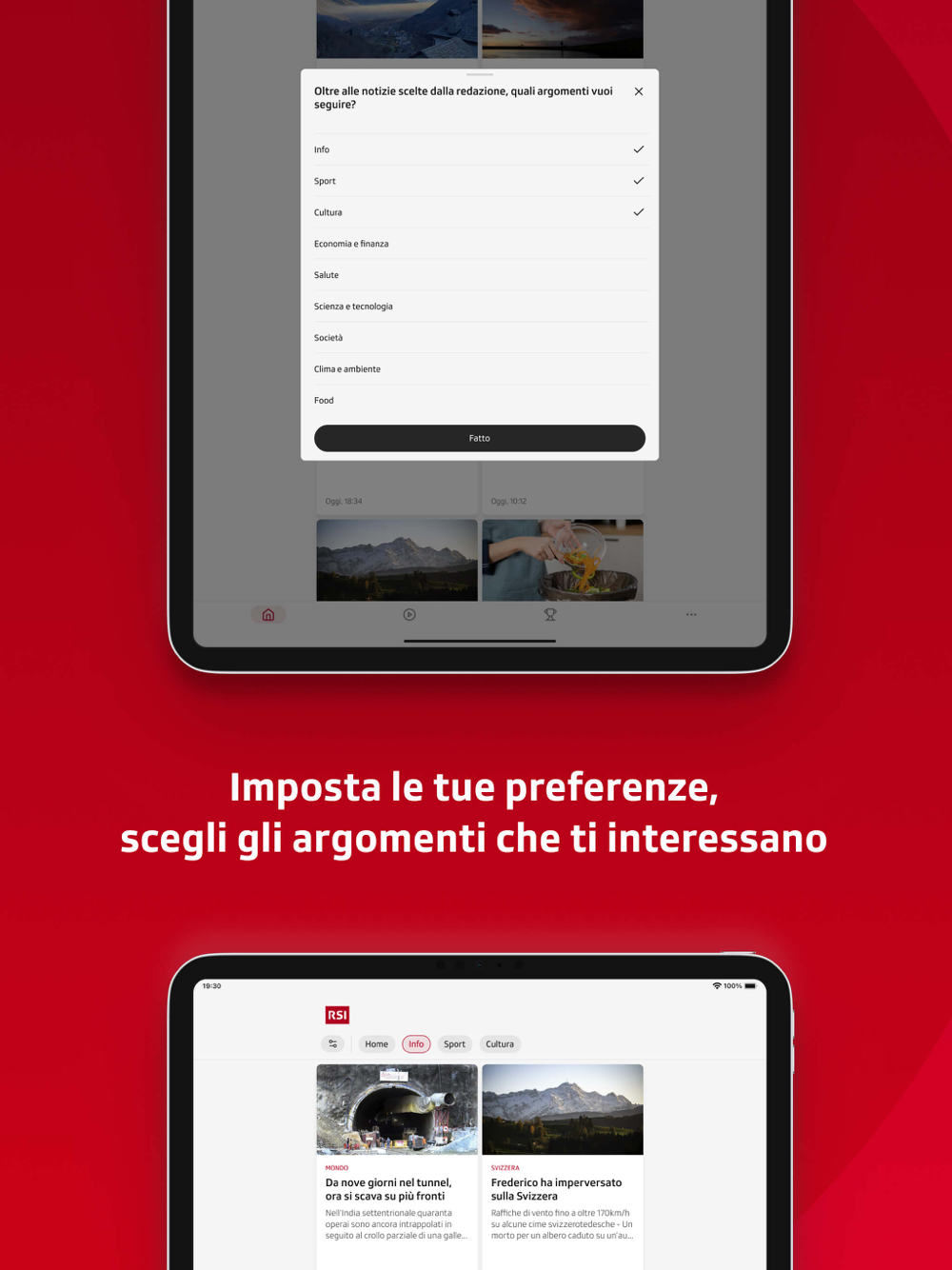 L’APP RSI ti suggerisce nuovi contenuti in base alle scelte tematiche che hai effettuato, ai contenuti dell’APP RSI che hai visualizzato di recente, alle notizie del momento e alle proposte della redazione.