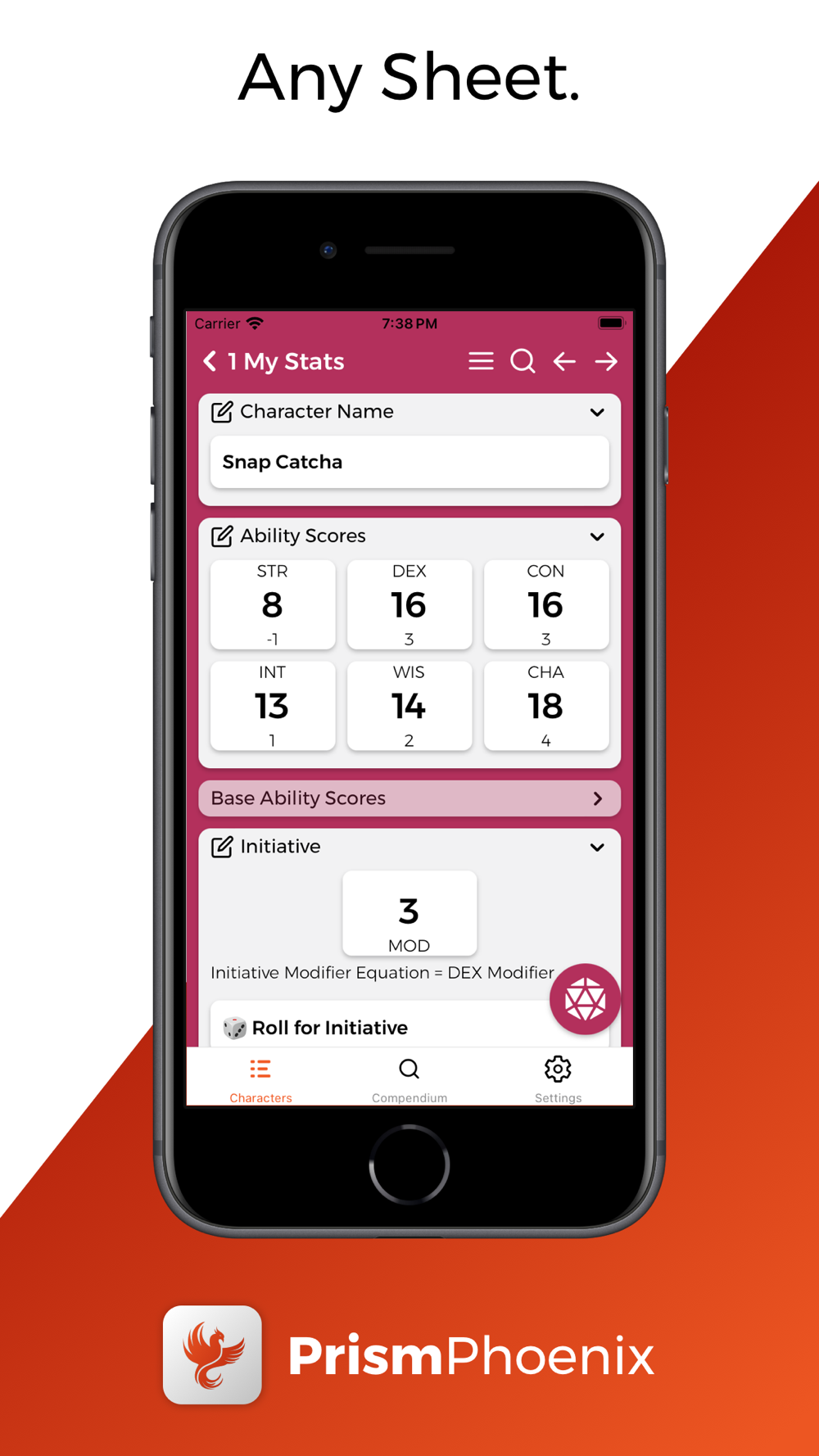 • Mobile Sheet. Compact, Customizable, Mobile Friendly Digital PrismScroll designed character sheet.
