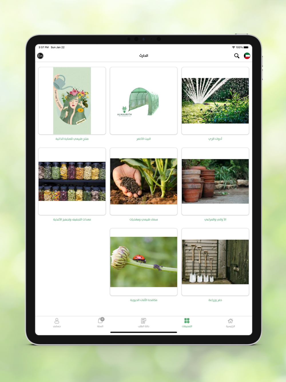 تطبيق الحارث هو المكان الأنسب لكل ما يحتاجه البستاني. ما عليك إلا الدخول الى التطبيق ثم البحث عن التصنيف المناسب وإضافة ما ترغب به الى عربة التسوق. وبعدها أكمل عملية الطلب وحدد آلية الدفع وكيفية الحصول على الطلب.