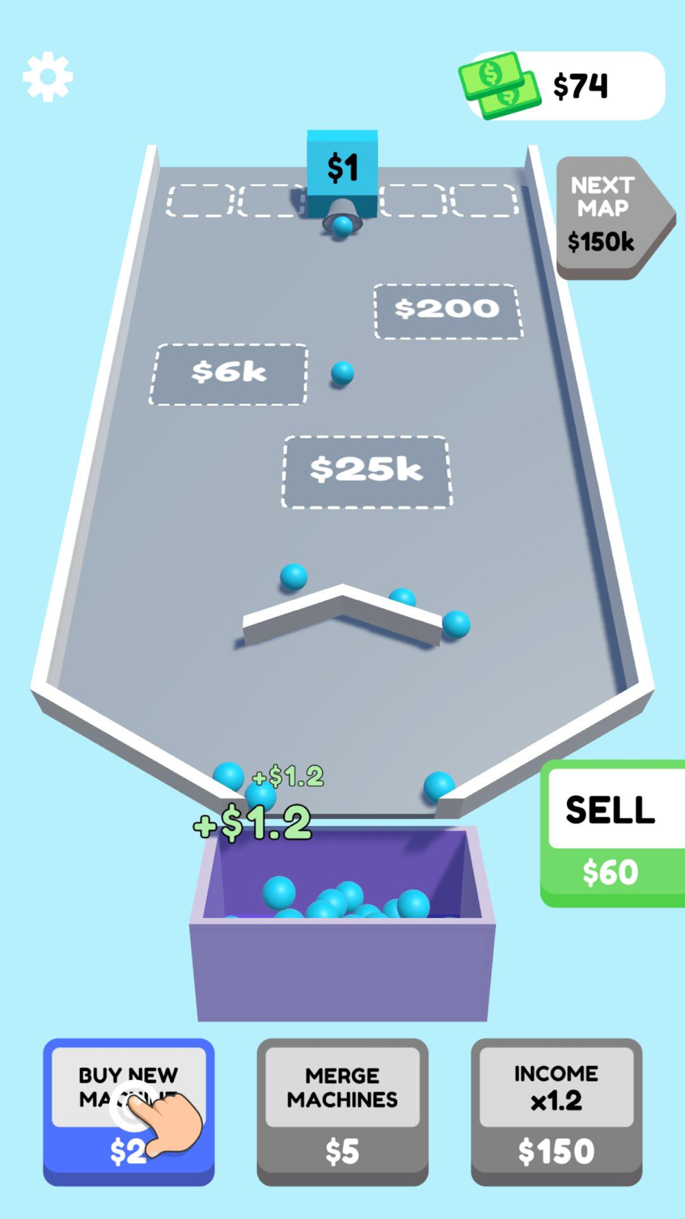 Produce colored balls, throw them into boxes and earn as much money as you can.