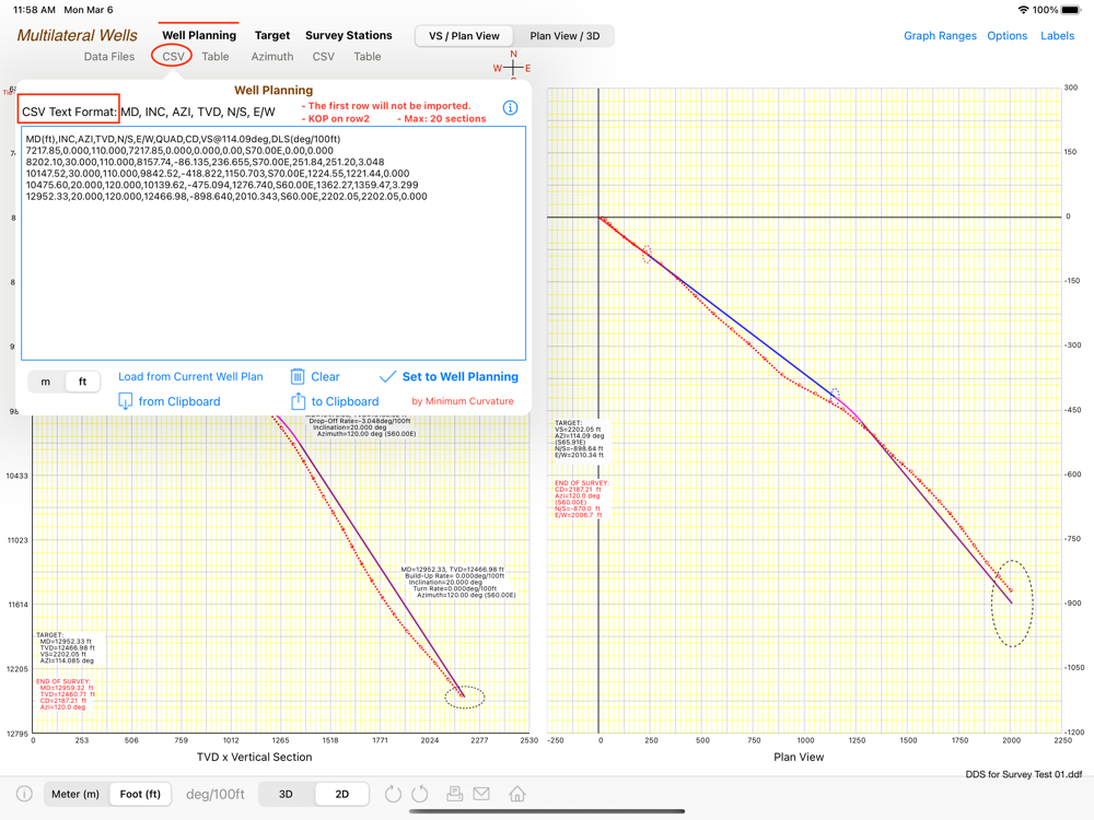 The well planning can be built and edited using our app "Directional Well Planning" or "Directional Drilling".