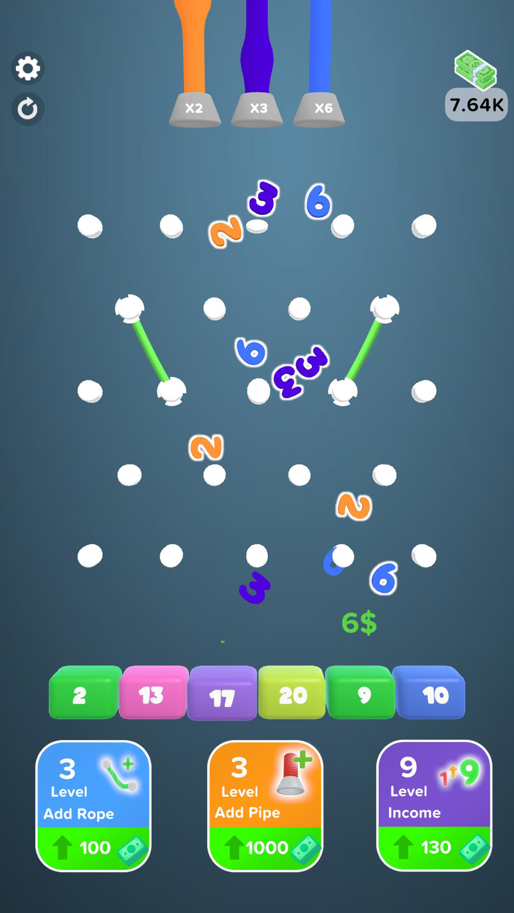 Use ropes to divert digits and earn money. Add more ropes to make your strategy perfect. Add pipes to get more digits and break the blocks even faster.