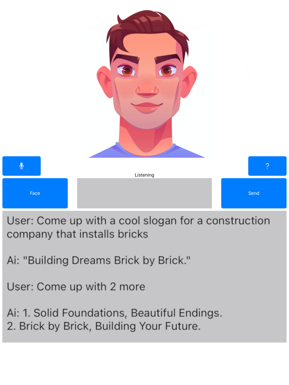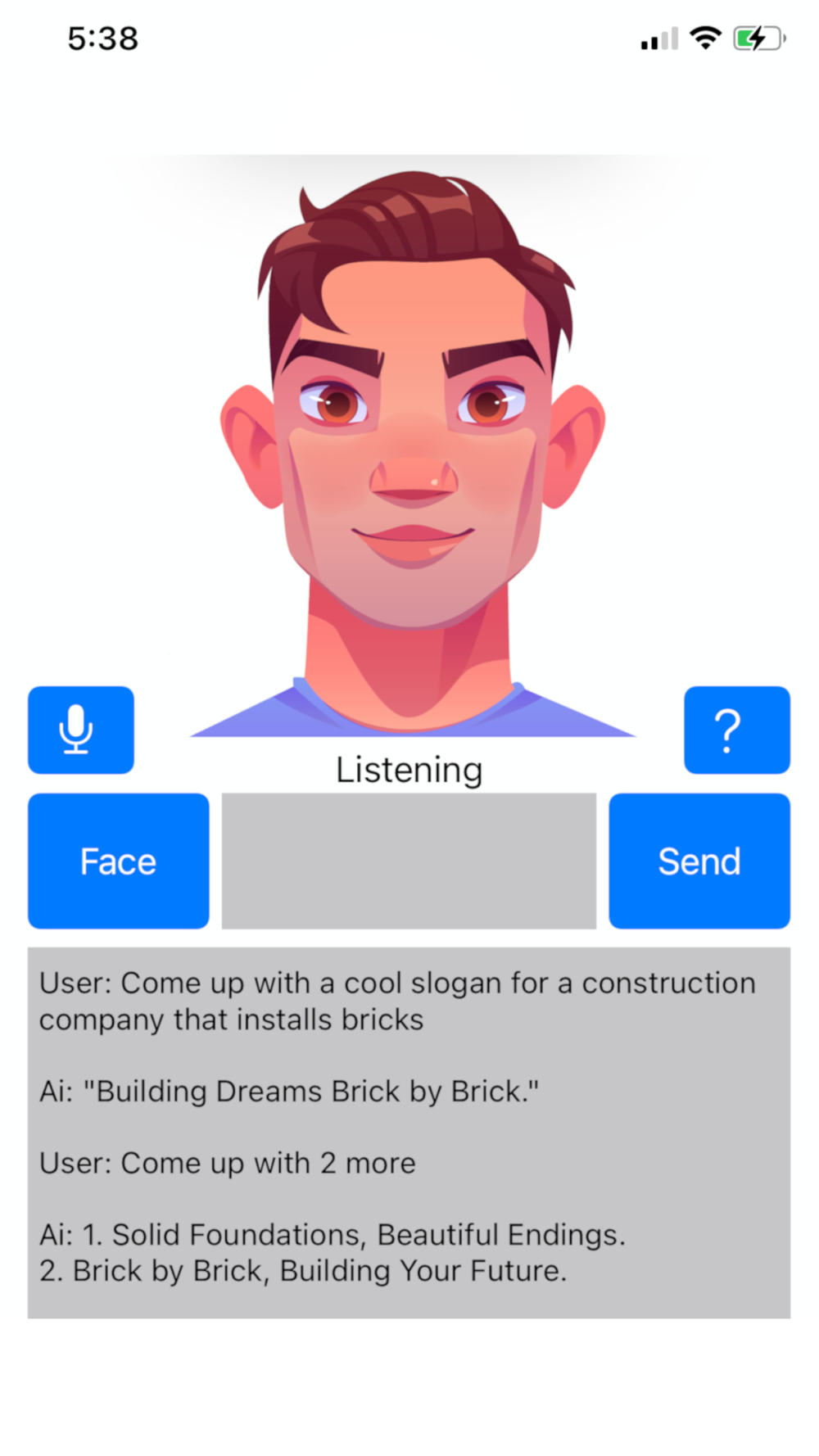 Introducing Ai Chat, the ultimate app for answering all of your questions and having a conversation with an Ai. With the app, you can use your voice or text messaging to ask the Ai any question. From scientific facts, to storytelling, to generating hashtags and slogans, the Ai can do it all. Additionally, you can engage in a continuous conversation with the Ai, asking follow-up questions or providing more information. Whether you're looking to satisfy your curiosity, improve your writing, or just have a friendly chat, Ai Chat is the perfect companion. Download Ai Chat today and experience the power of Ai in the palm of your hand.