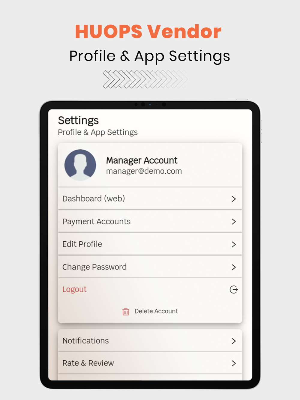this app Will Help vendor users to manage orders and products At Huops APP