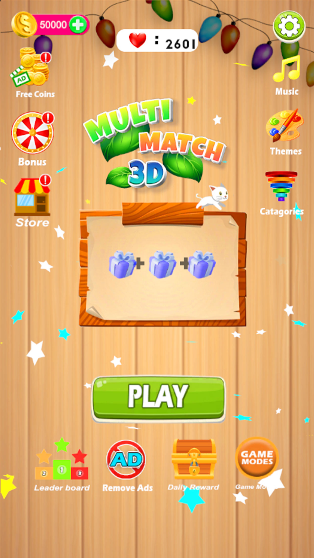 Prepare for a new, challenging, and original game of matching pairs. You must match 3D objects on the ground to eliminate them all. When you complete a level, new objects to combine will become available. Every Match 3D level will provide the pleasurable experience of matching 3D objects on the screen, and every action will result in a satisfying 3D effect that will enhance your gaming experience. Well-designed cognitive trainer levels.