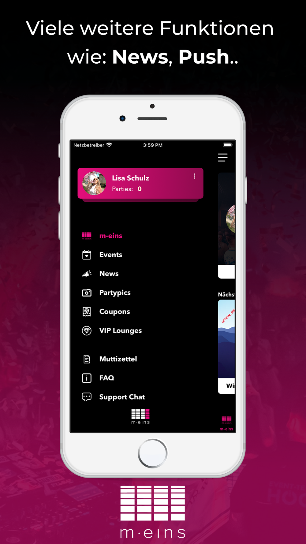 Lade dir unsere m-eins App und werde Mitglied im m-eins.