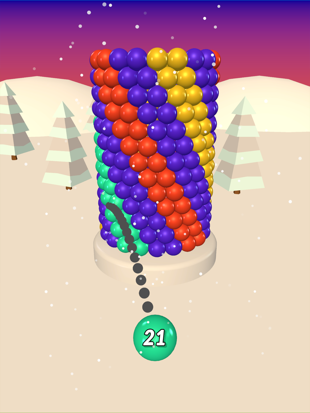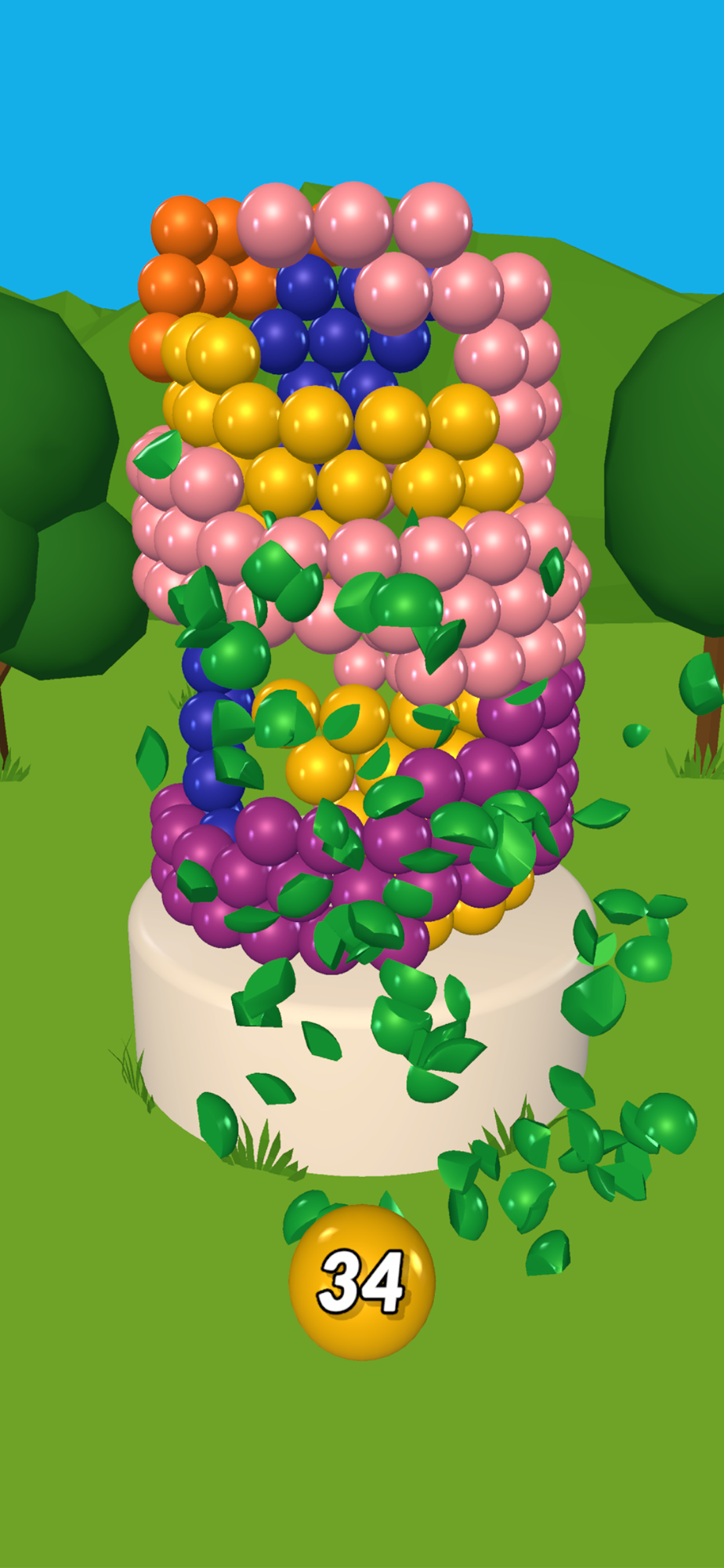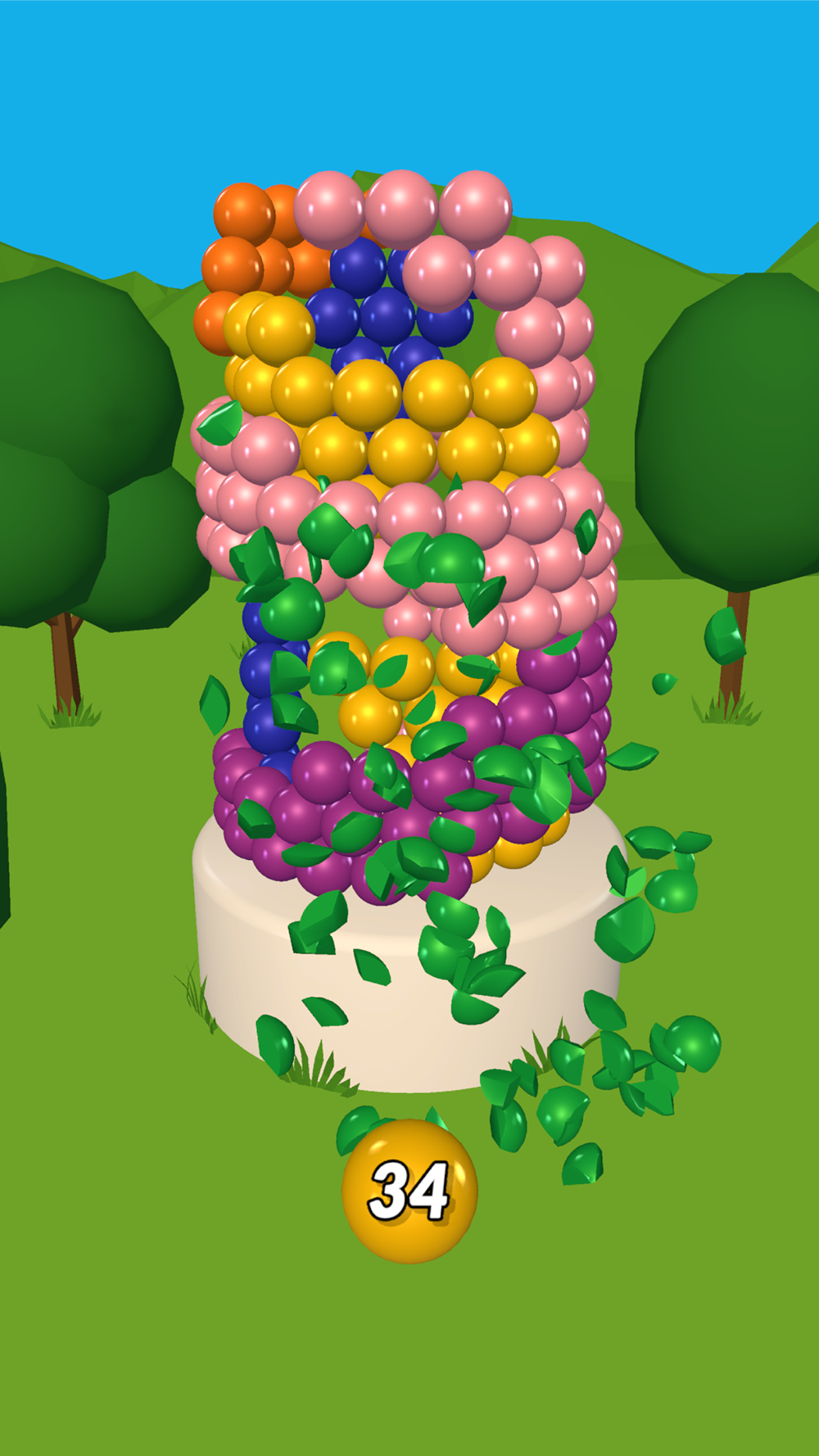 -All other bubbles which are no longer being supported by the tower will fall down and earn points!