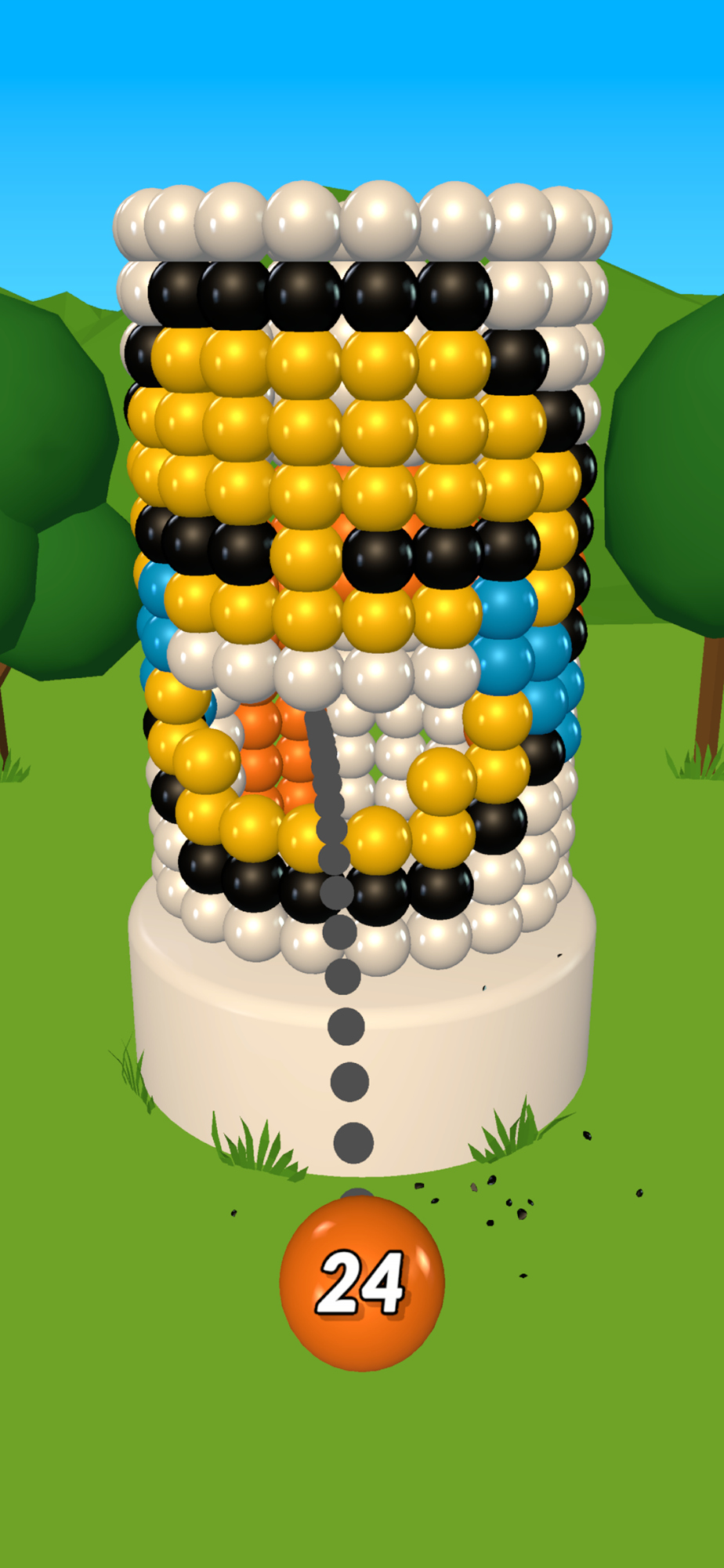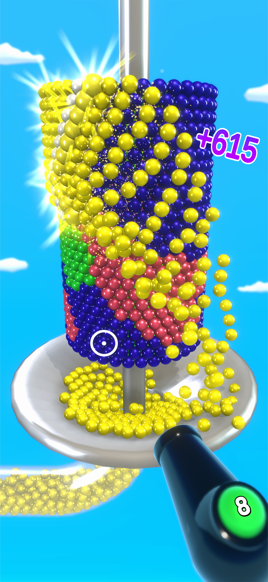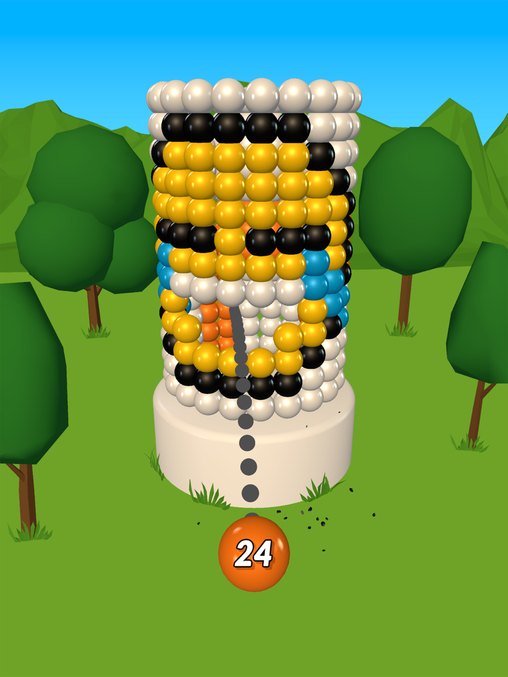 -All other bubbles which are no longer being supported by the tower will fall down and earn points!