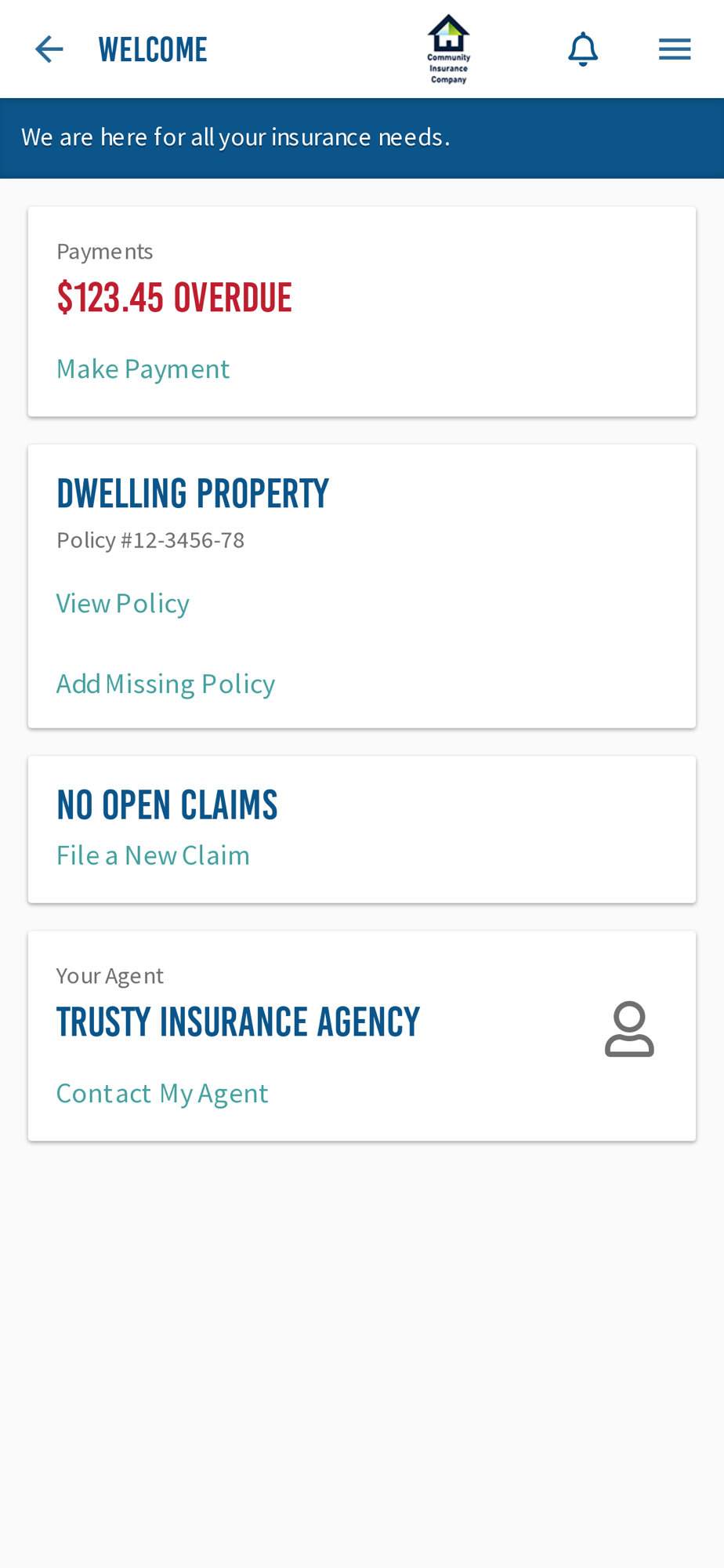 You will need a security code which can be found on your invoice, dec page, etc. or by contacting your agent or Community Insurance Company to set up your access the first time.