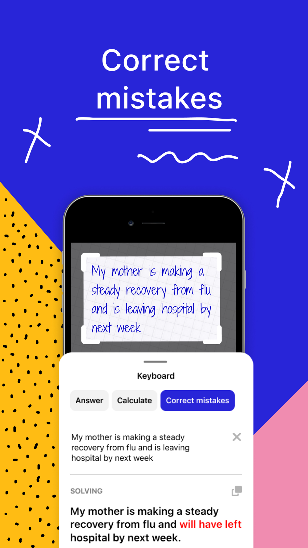 Write down a sentence you’re not sure of, the app will inspect it and submit a modified and improved version with 0 mistakes.