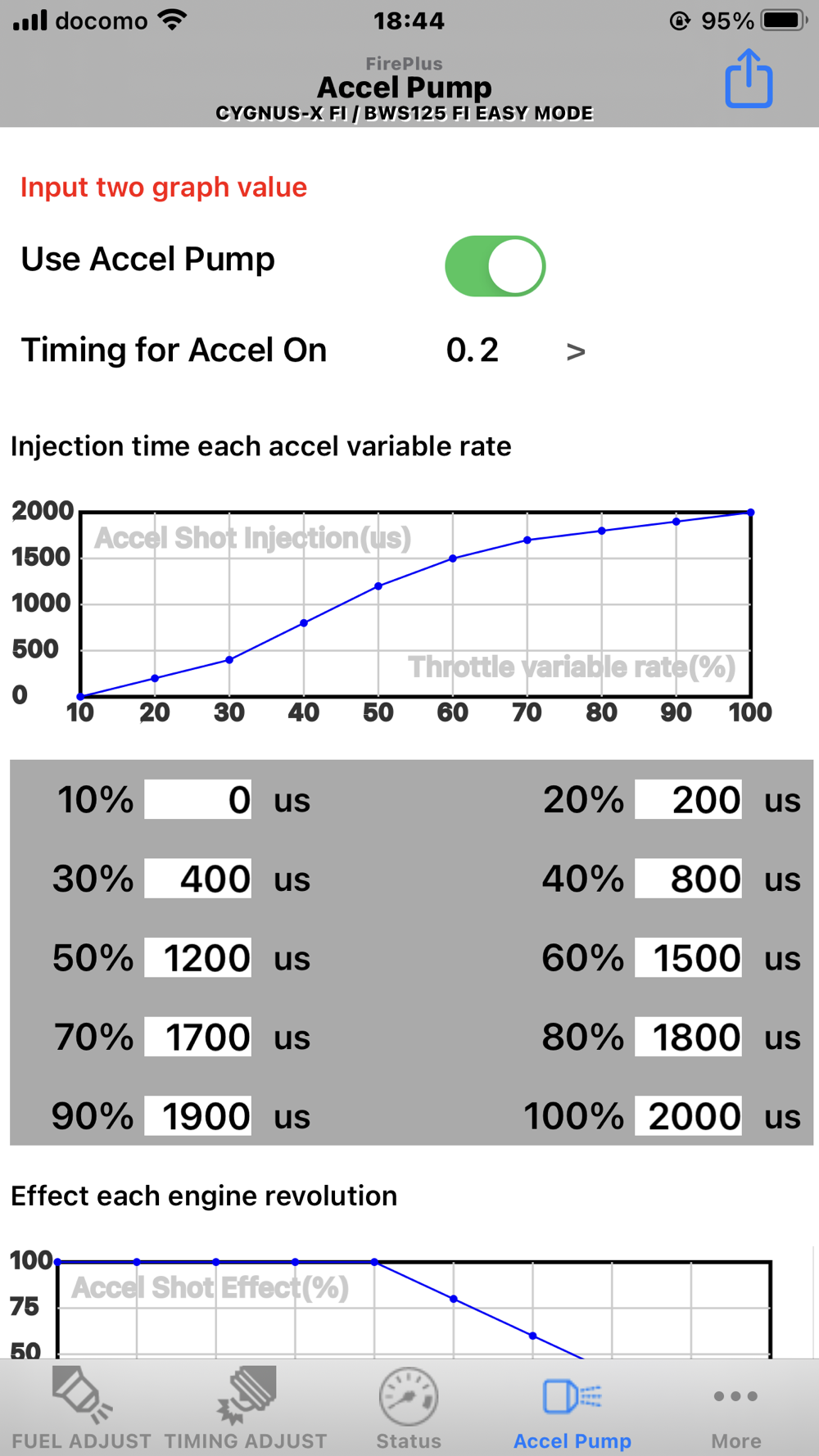 - The maximum 2500micro/-7500(ex.GROM JC61)micro seconds the engine rotation and throttle position for each fuel injection increase / decrease can edit and write-read.