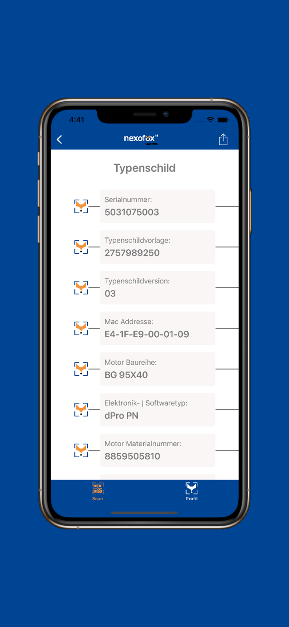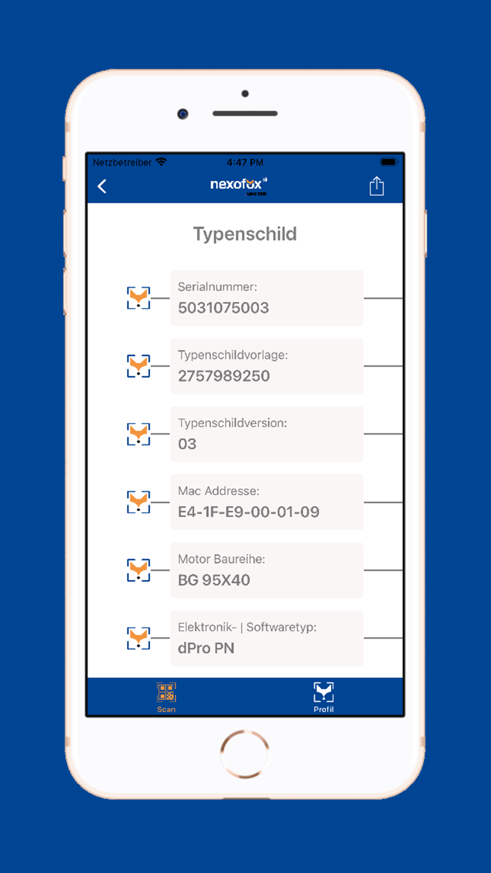 Nameplate ist eine kostenlose App zur Anzeige von Produktinformation zu Dunkermotoren Antrieben.
