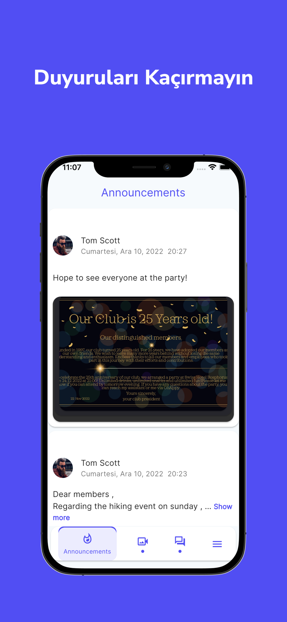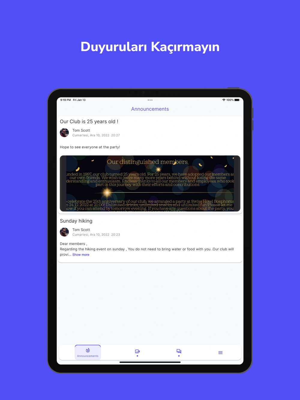 Kulüp üyeleriyle anlık mesajlaşabilirsiniz.
