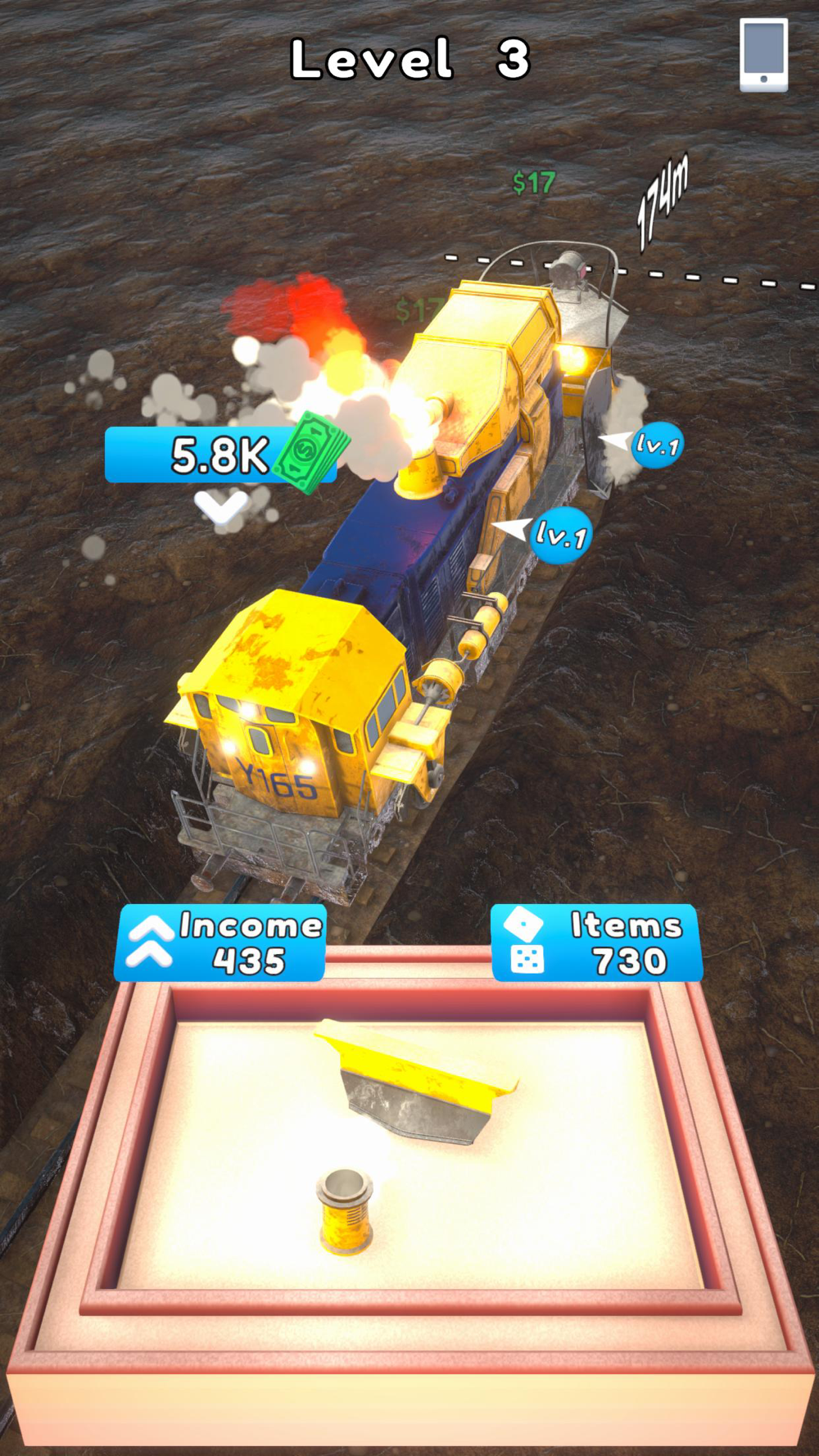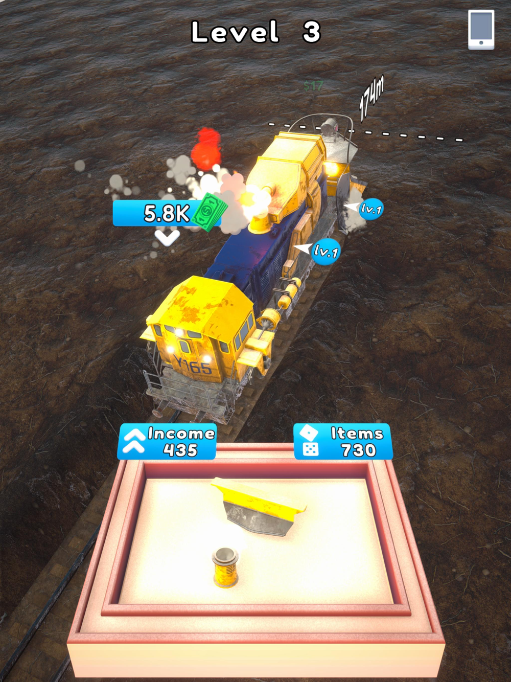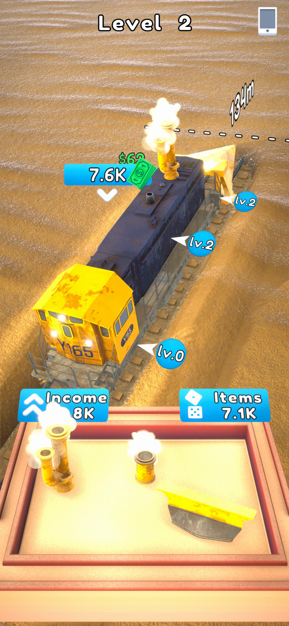 Upgrade your Train to carve snow, sand and mud. Merge your cargo into more powerfull itens and go as far as you can!