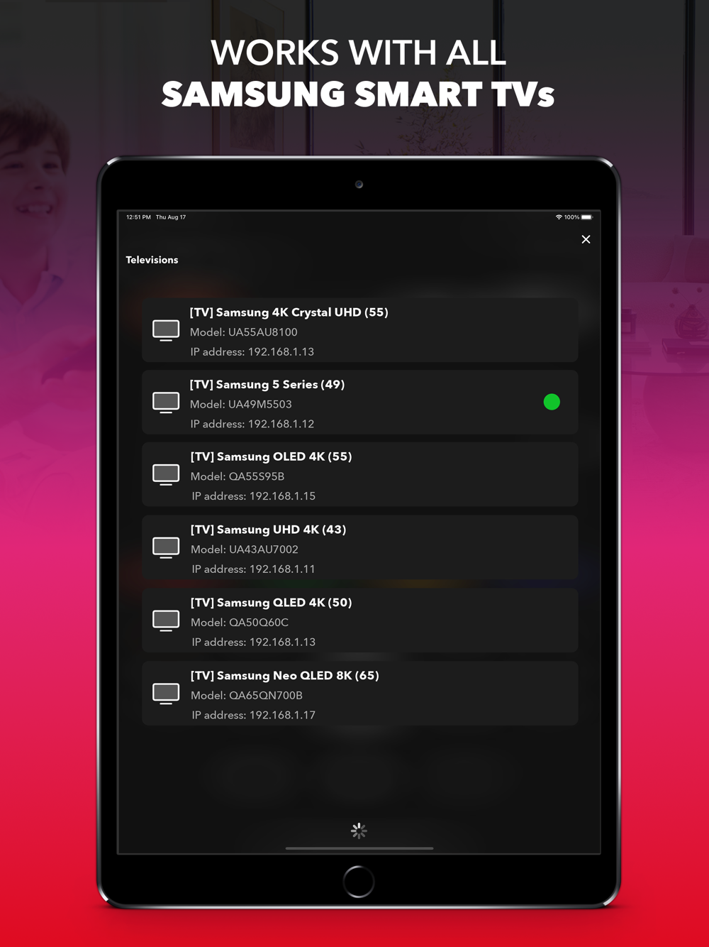 • Remote for Samsung TV can only connect if you are on the same WiFi network as your TV device.