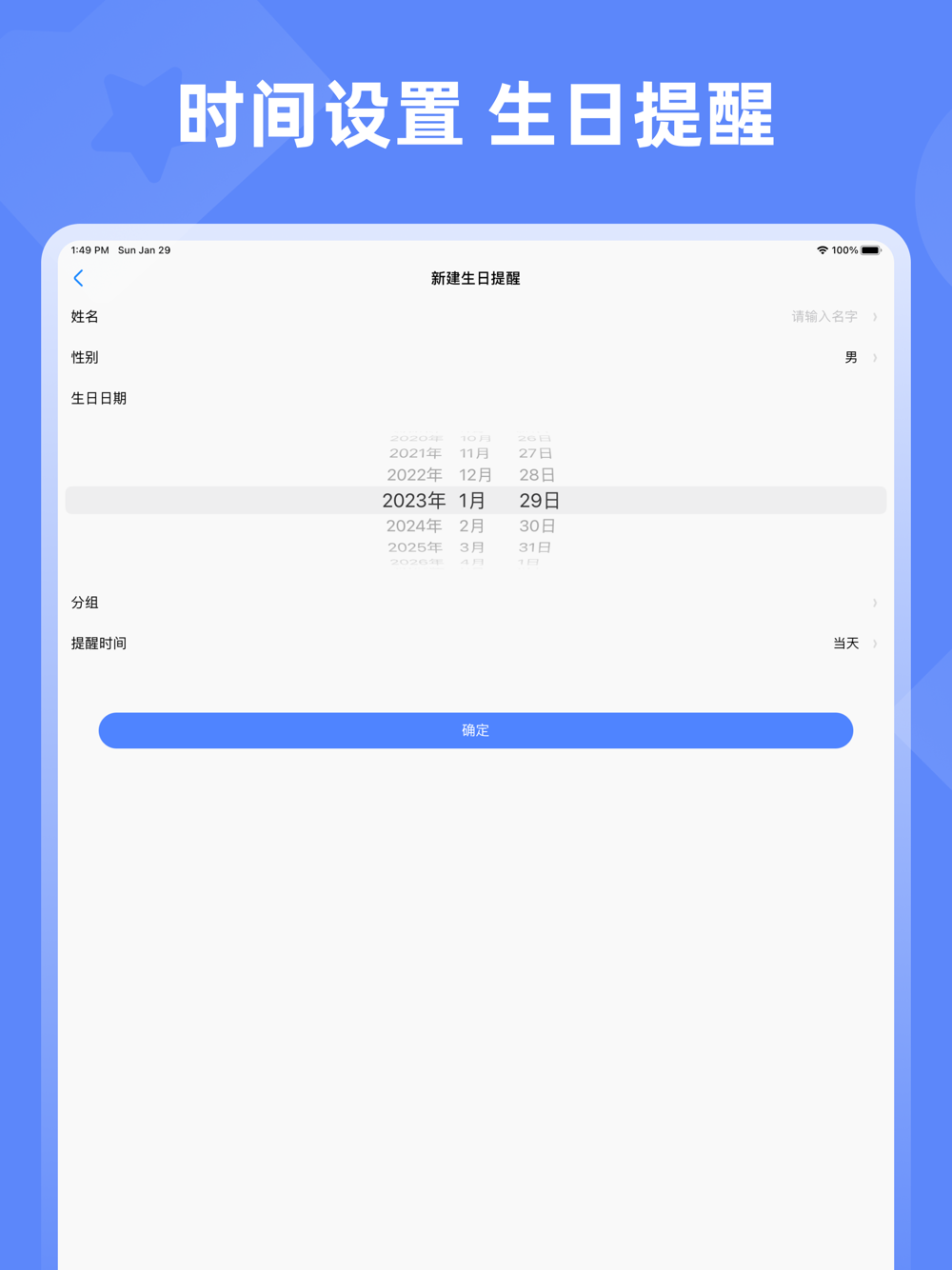 生日提醒是一款记录提醒类App,可以使用它记录亲朋好友的生日,然后自定义设置一个时间(如:提前一天,提前一周等等)提醒自己,以便我们可以有足够的时间去准备这次的纪念日。