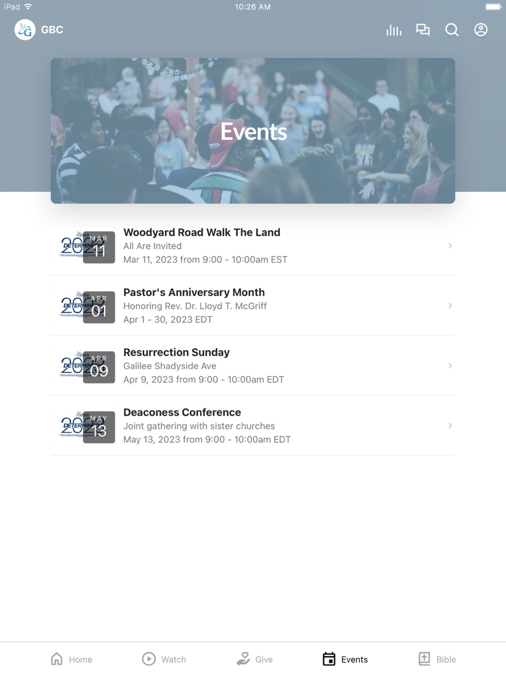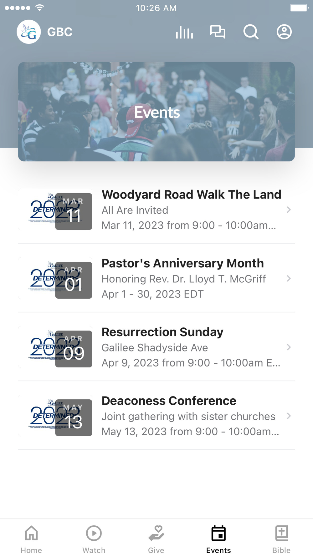This app will help you stay connected with the day-to-day life of Galilee Baptist Church. With this app you can: watch or listen to past messages; stay up to date with push notifications; share your favorite messages via Twitter, Facebook, or email; and download messages for offline listening.
