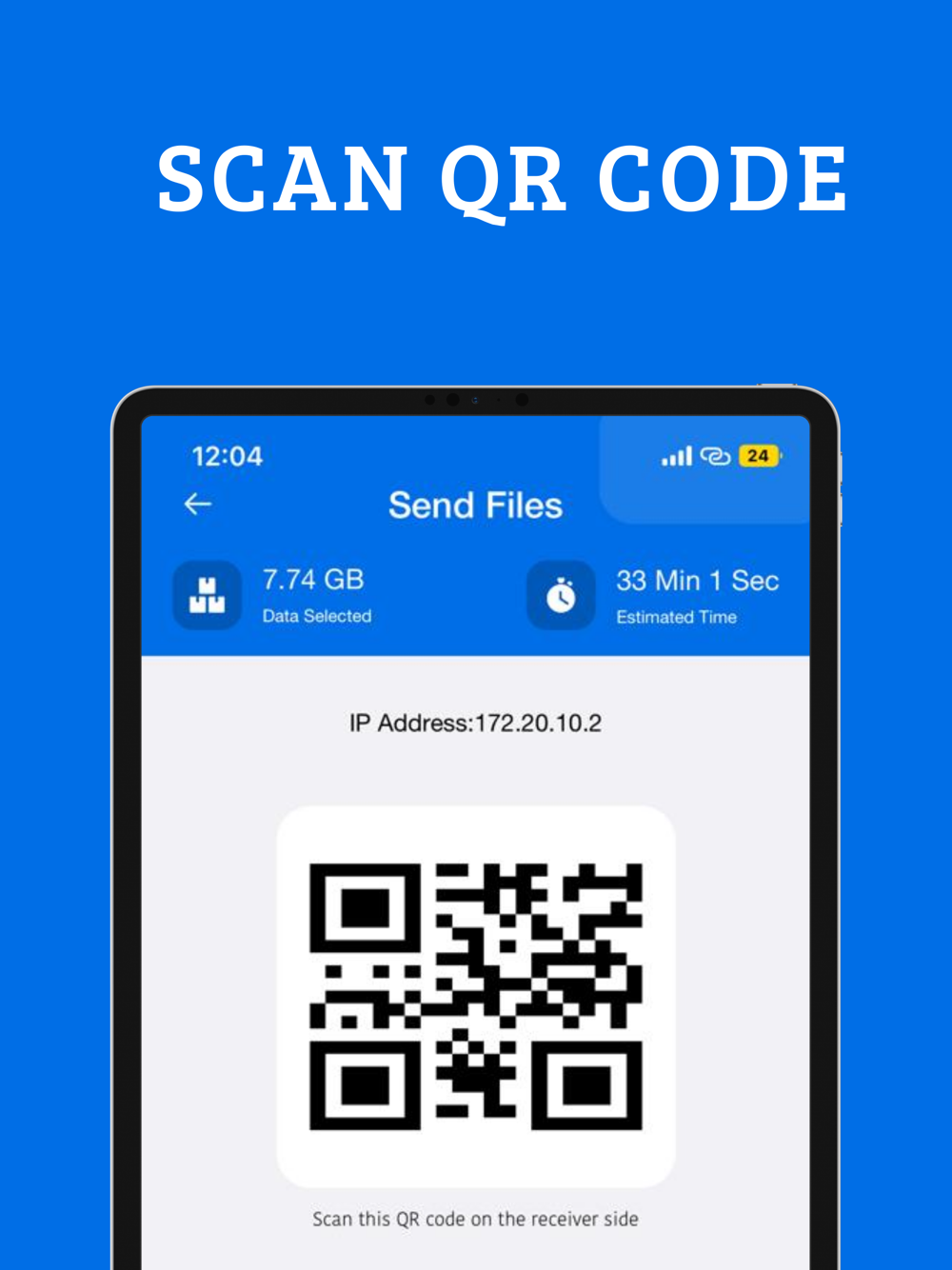 Easy way to transfer data : Share Data: Smart Switch Files simply scan QR Code and start transferring the files. It can send all the files in minutes no matter how big they are.