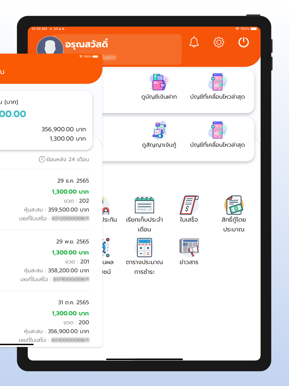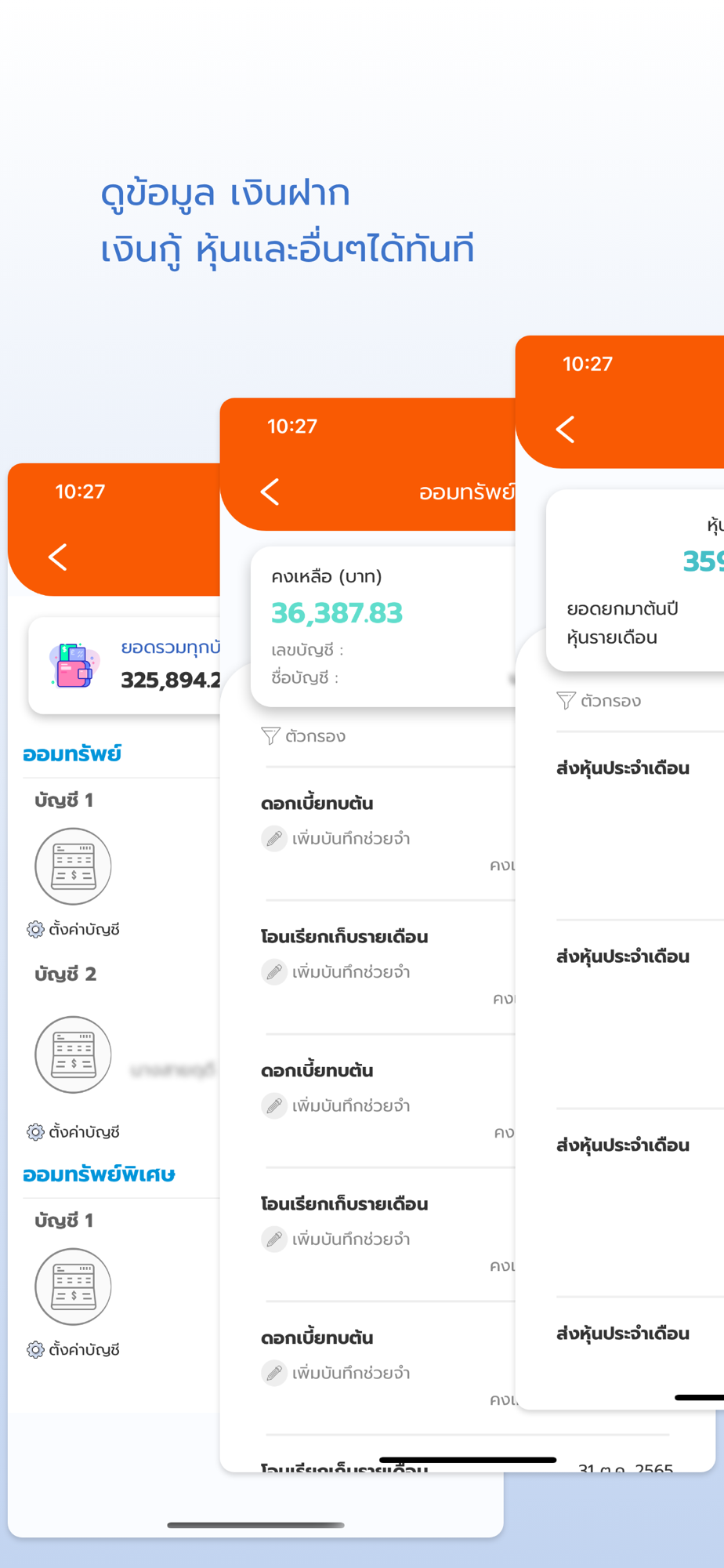 - ดูยอดเงิน รายการเคลื่อนไหวบัญชีเงินฝาก