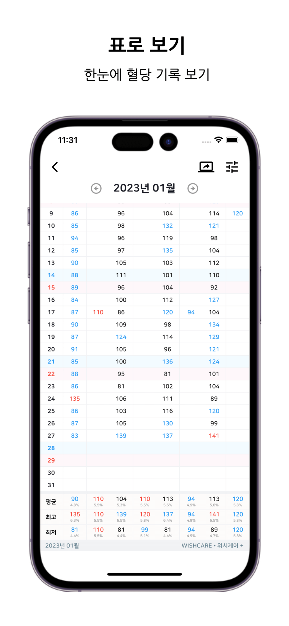 - 혈당기록 : 하루 3번 식전, 식후, 취침전 구분하여 기록