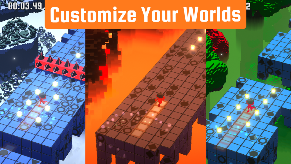 *Race each other in PvP challenges, try to beat level completion times and unlock skins, levels and NPCs with your speed racing and level building skills.