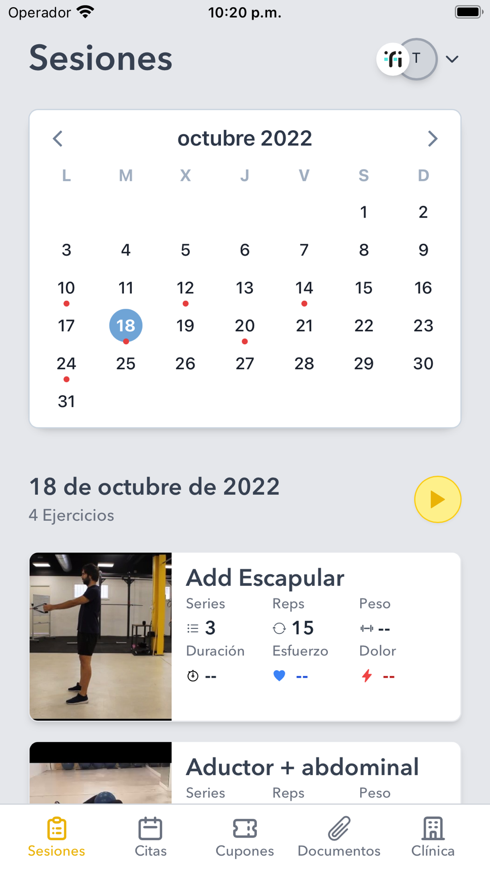 Aportar el feedback de esfuerzo percibido (escala de borg) y de dolor (escala EVA) de cada ejercicio.