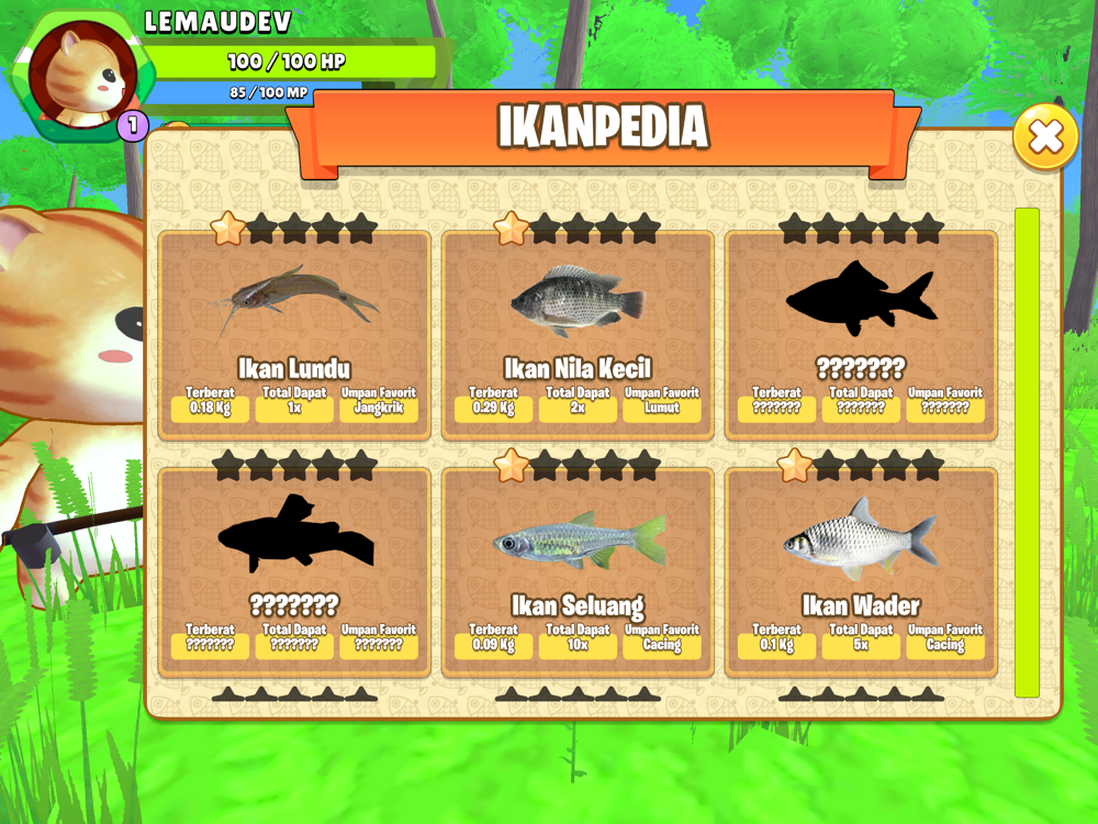 Kalian akan bermain sebagai Kucing lucu yang bertahan hidup dengan Memancing di hutan dekat desa, Terdapat berbagai macam jenis ikan yang ada yang bisa kamu pancing dengan berbagai jenis umpan yang tersedia. Terdapat Banyak jenis ikan air tawar yang bisa kamu pancing dan tentunya bakalan banyak update Menarik Lainnya.