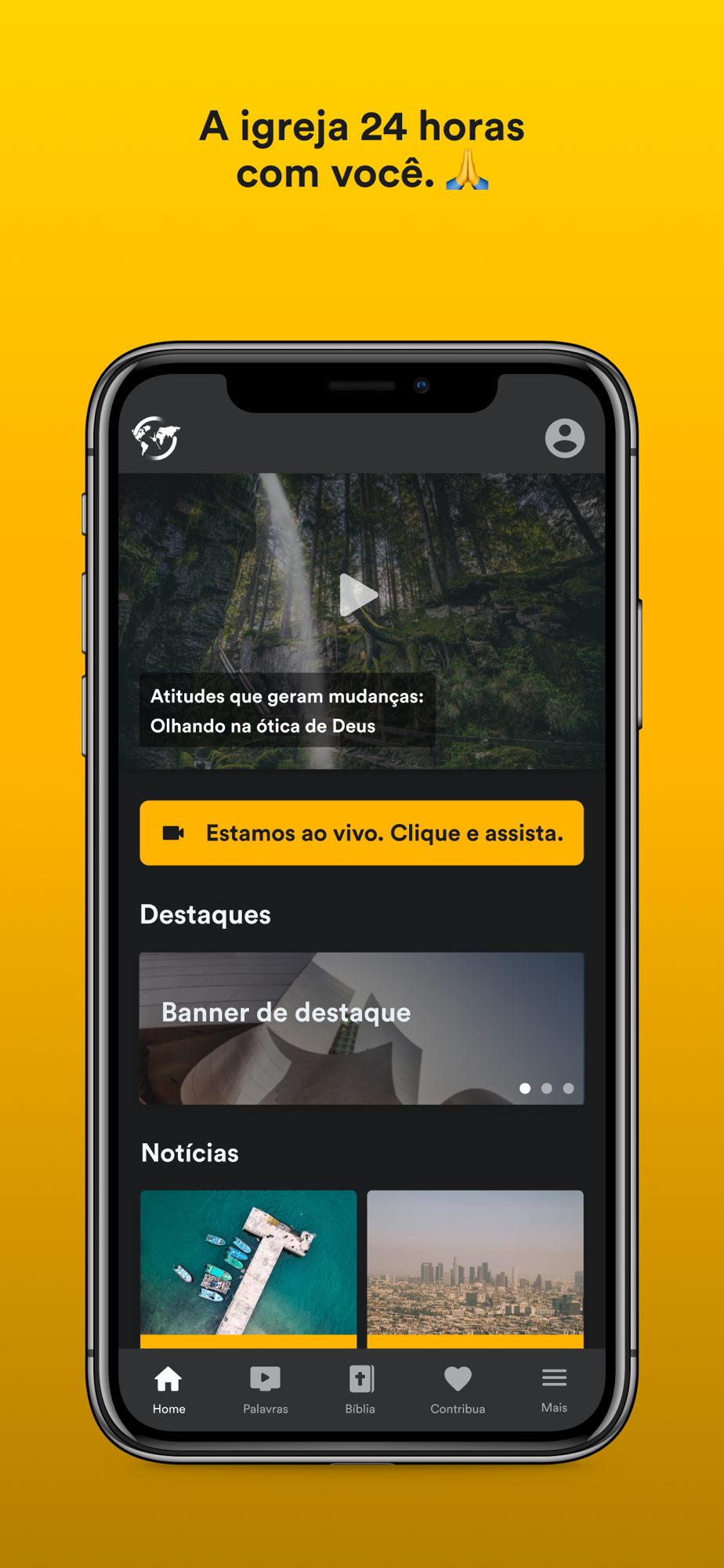 - Conecte-se com a igreja através dos grupos de interesse, receba conteúdo direcionado e obtenha sua carteirinha exclusiva.