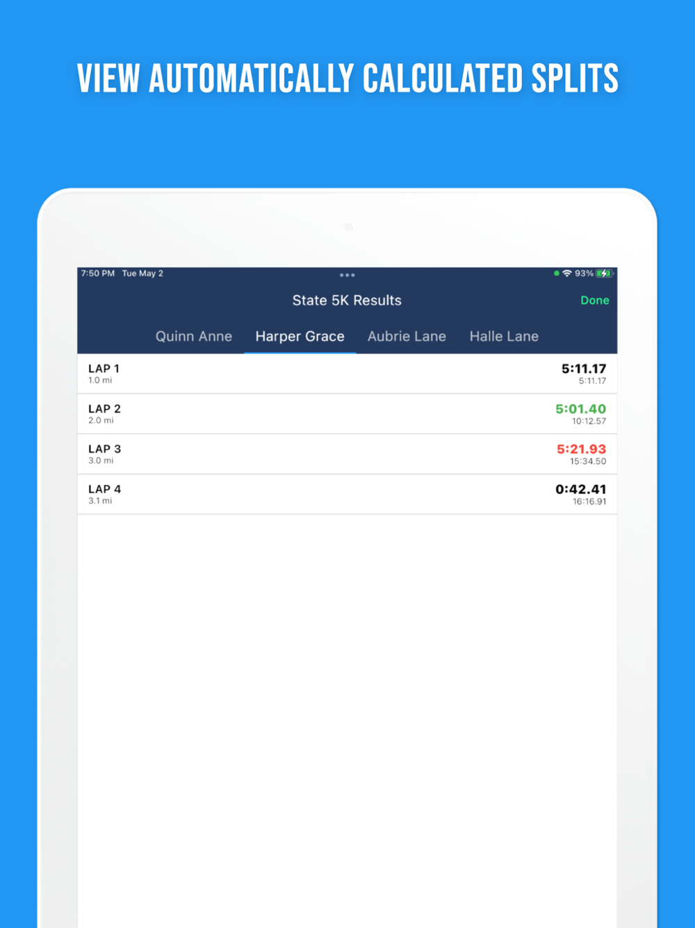 With Split Tracker, you can have multiple coaches time and take videos at once. The app conveniently coordinates their photos and videos to create accurate splits during training or a race. Say goodbye to stopwatch struggles and hello to seamless teamwork!