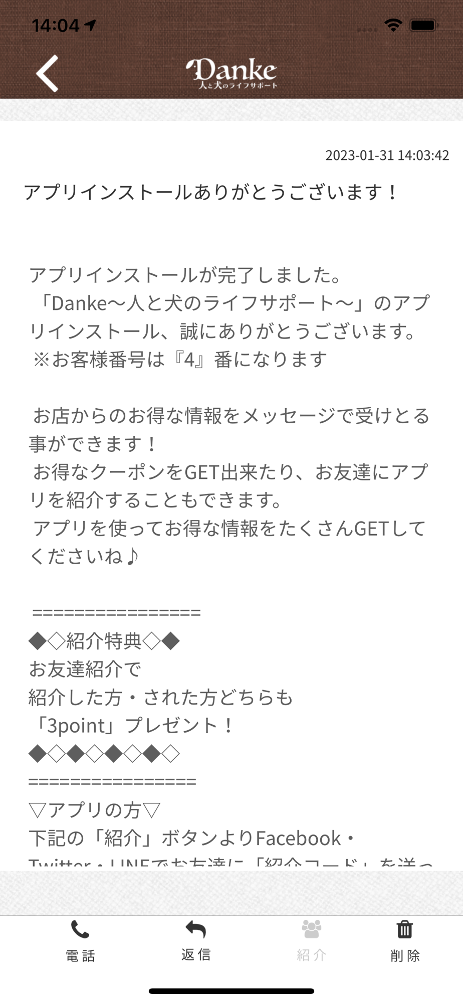このアプリでは、Dankeの最新情報の受け取りや便利な機能を使う事ができます。
